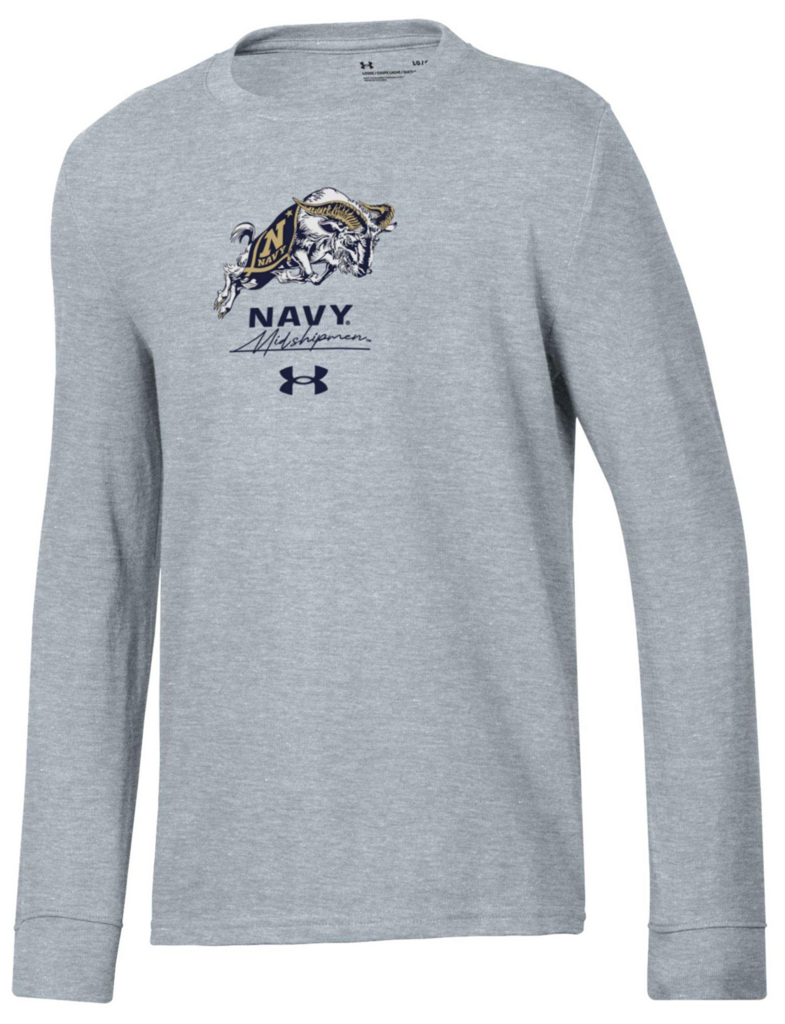 Under Armour Youth Navy Midshipmen Grey Performance Cotton Long Sleeve T-Shirt