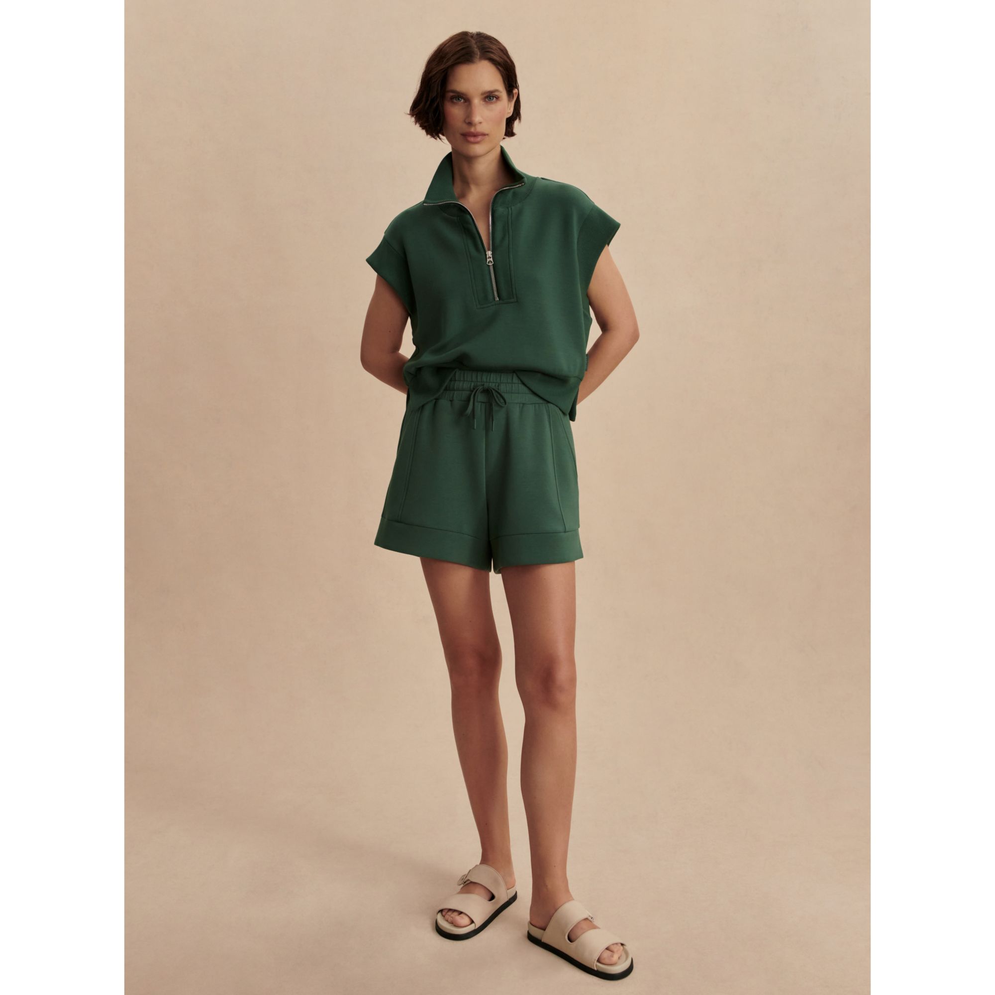 The Atrium shorts, made in our signature DoubleSoft™ fabric, feature an elegant A-line cut. Perfect for spring/summer and daily wear, these shorts effortlessly pair with knitwear and matching DoubleSoft™ tops, boasting a dipped drawcord and deep hem panel for added style.