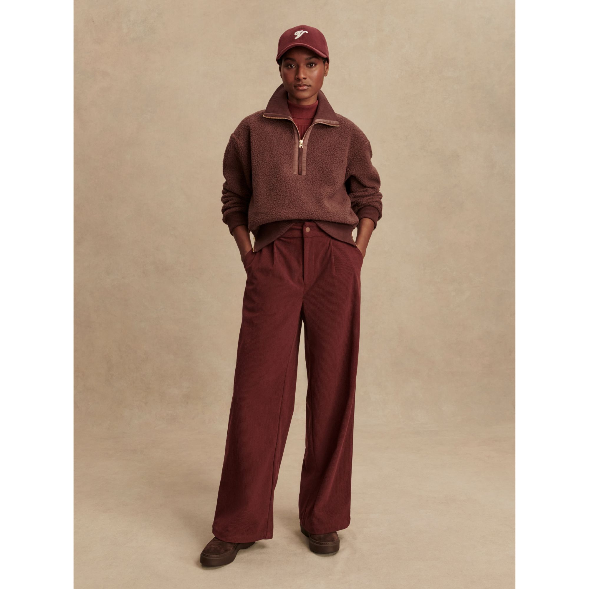 Spotlighting our 100% Recycled Plush Borg Fleece, this style is cut with a half-zip collar, ribbed cuffs and loose fit sleeves. Trademark side zip detailing and a luxe sateen trim elevate the design.