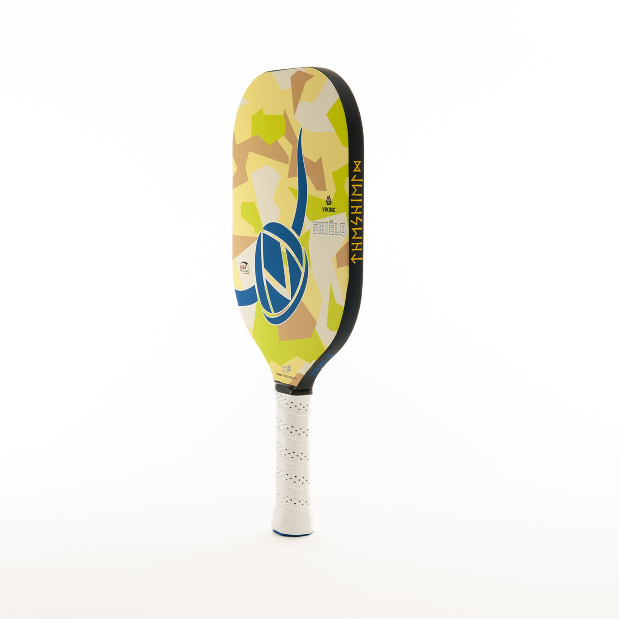 The Shield Pickleball paddle is built for a player who is a 3.75 and above. Coming in at 16mm thickness, this paddle is built to stand up to anything that is flying at you. The fine grit on the paddle ensures that a player will have no problem generating spin, and the thickness of the paddle allows players to control their pace and power when working in and around the kitchen. Prioprietary Carbon Fiber is used in this paddle as well, softening the response at impact all while creating stability.