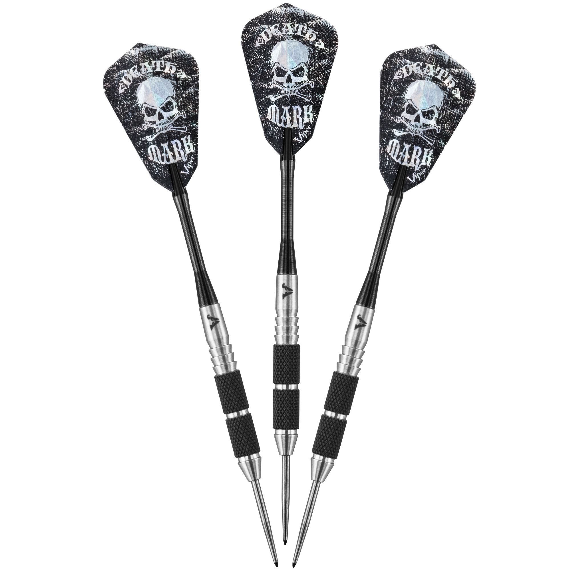 Crush the competition with Viper Desperado Tungsten 24g Death Mark Steel Tip Darts. Featuring a 80% tungsten barrel and aluminum shaft for reliable strength, these darts will stand up to round after round of action. The included TacTech case keeps your darts safe and secure until game time. Nail your shots with the Viper® Desperado Darts.