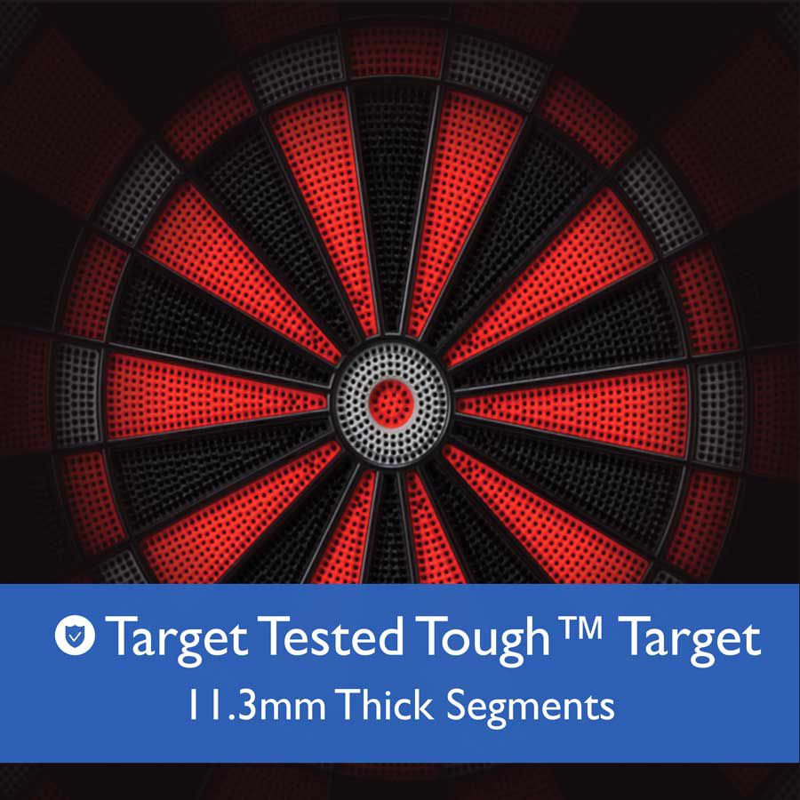Plan the entertainment around your Viper® Solar Blast Electronic Dartboard next time your friends stop by. This quality board is made of Target Tested Tough™ nylon segments that set the bar on performance. It has 16 player overhead scoring for all your friends, including a ton of games and playing options to choose from. Easily mount your Viper® Solar Blast Dartboard in your game room and get ready for hours of competitive play.