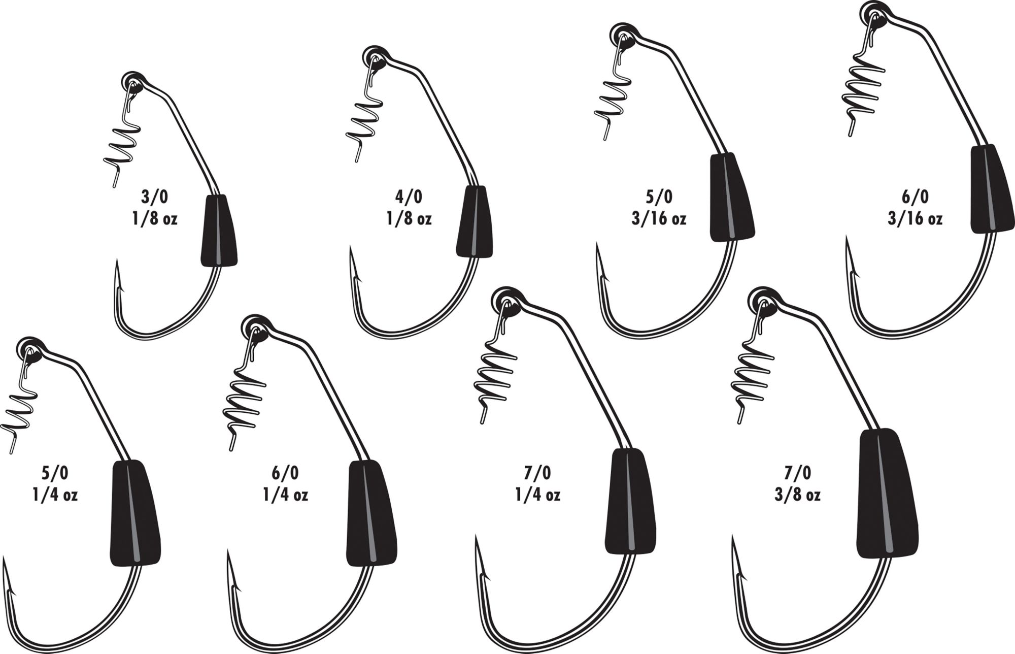 Anglers looking to add a little action to their swimbaits always choose the VMC® Heavy Duty Weighted Swimbait Hook. Its pre-weighted design eliminates the need to work with other weights. This black nickel extra wide gap hook features a tapered locking spring, which holds baits in place after multiple casts and extends the life of soft plastic baits. The spring also allows you to add and remove bait without any damage. Add the reliable Heavy Duty Weighted Swimbait Hook to your tackle box.