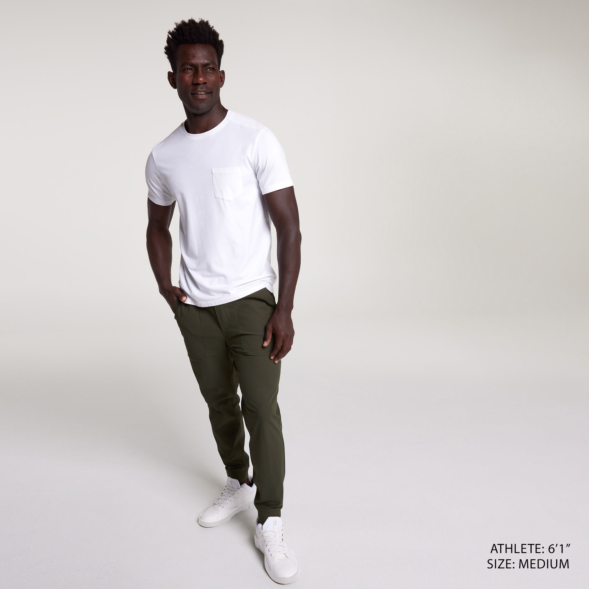 This casual style is the hero of everyday hustle. It’s constructed with comfortable 4-way stretch fabric, an adjustable drawcord waist and a fitted bottom hem at the ankle providing a secure jogger finish that moves with you. Our Slim fit is our most versatile, fitted through the hip and thigh, and tapered below the knee.