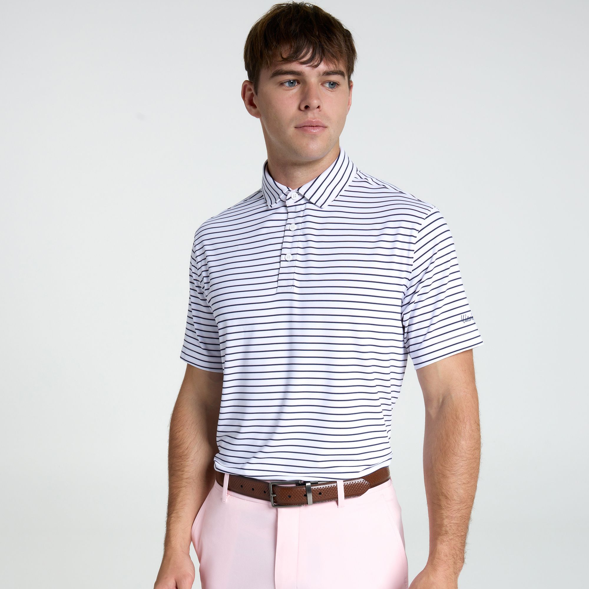 Elevate your golf game in style with the Walter Hagen Men’s Performance 11 Classic Tri-Stripe Golf Polo. Designed for comfort and performance, this polo features moisture-wicking and breathable fabric to keep you cool and dry, while its 4-way stretch construction ensures unrestricted movement during every swing. Complete with a classic collared design and UPF 50+ sun protection, this polo combines functionality with timeless sophistication for the golf course and beyond.