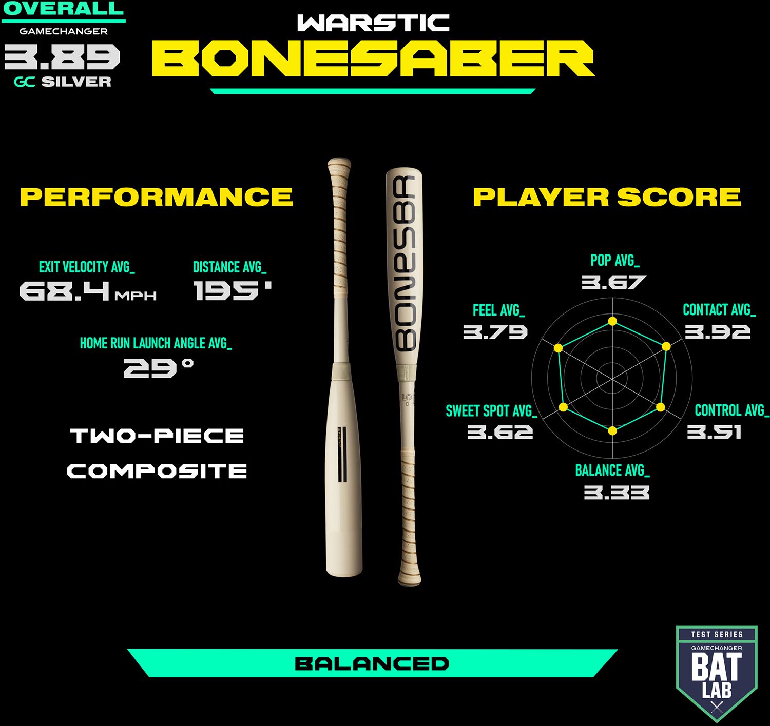 Designed as a versatile two-piece powerhouse, the Warstic Bonesaber USSSA Composite Baseball Bat is perfect for all types of hitters. The Warstic Bonesaber USSSA Composite expertly blends the ultralight swing weight of the Bonesaber with the massive barrel and peak responsiveness that a USSSA composite allows so you can confidently square up against any pitcher.