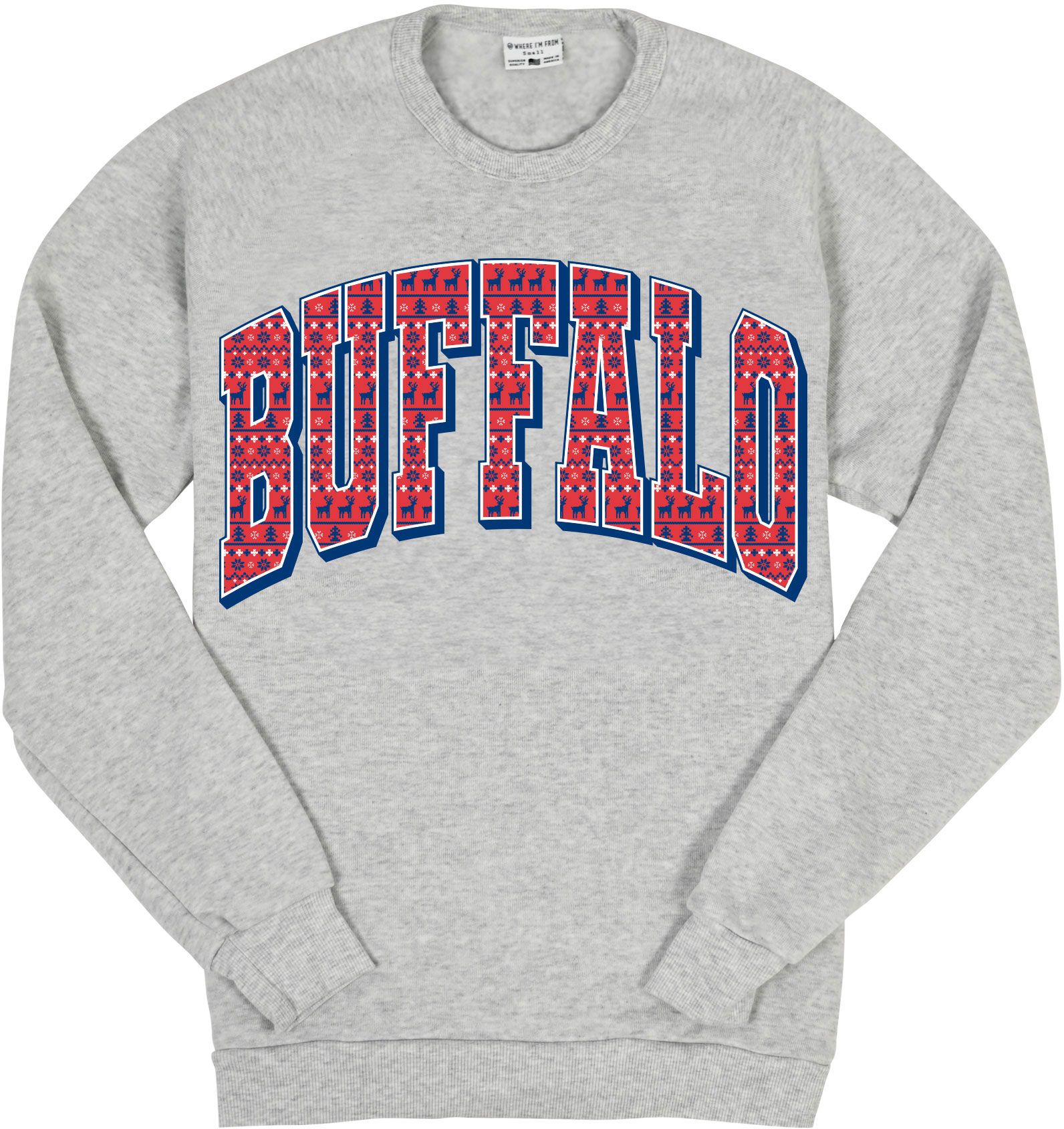 Where I'm From Adult Buffalo White Holiday Script Crewneck Sweatshirt