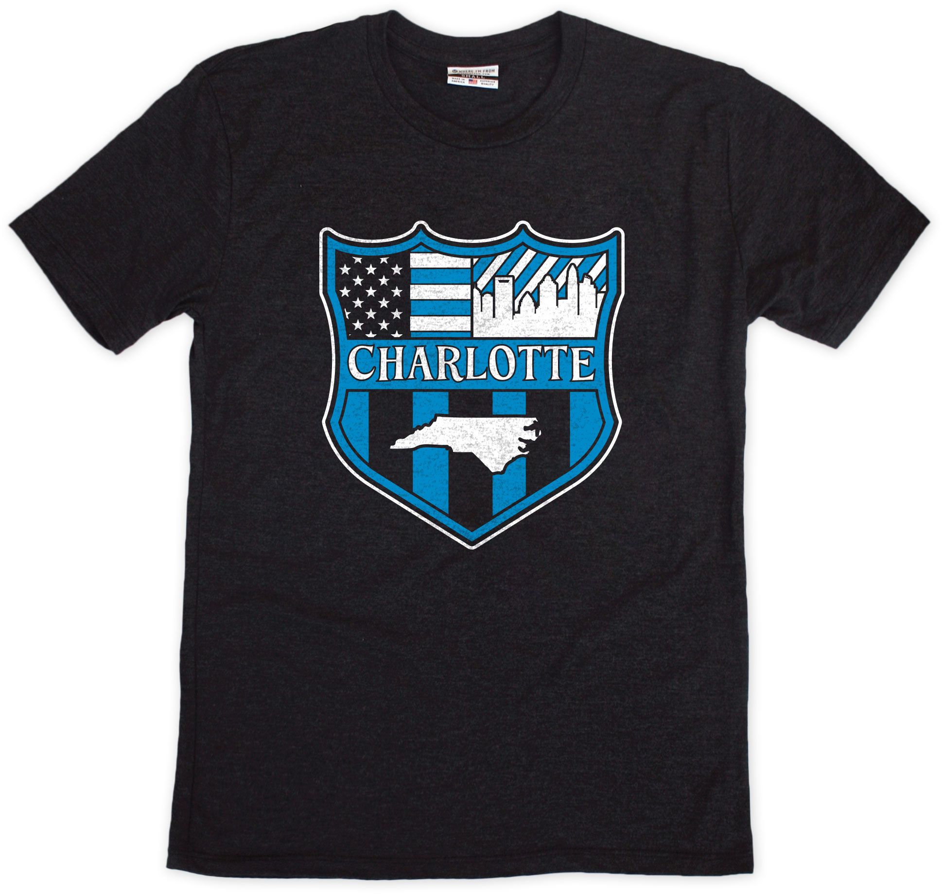 Where I'm From Adult Charlotte Black Sheild T-Shirt