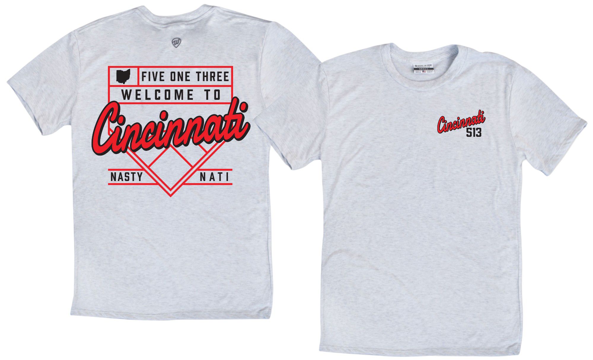 Where I'm From Adult Cincinnati White 2Sided Diamond T-Shirt