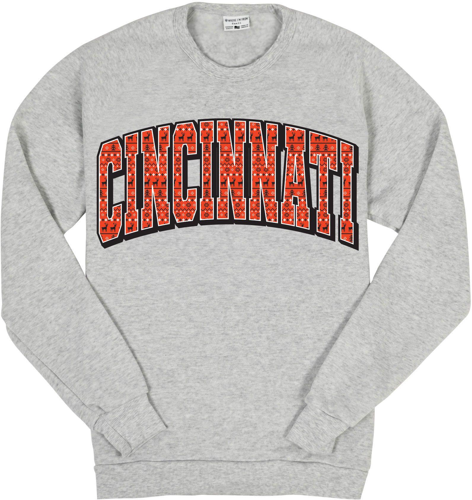 Where I'm From Adult Cincinnati White Holiday Script Crewneck Sweatshirt