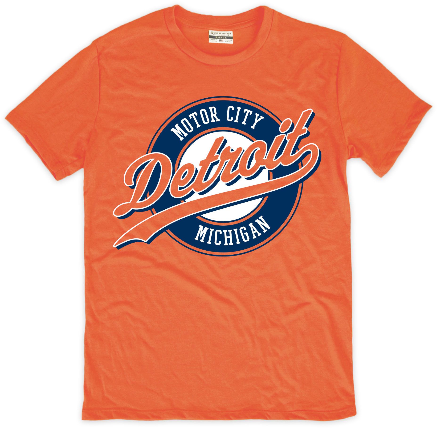 Where I'm From Adult Detroit Orange Script Baseball T-Shirt