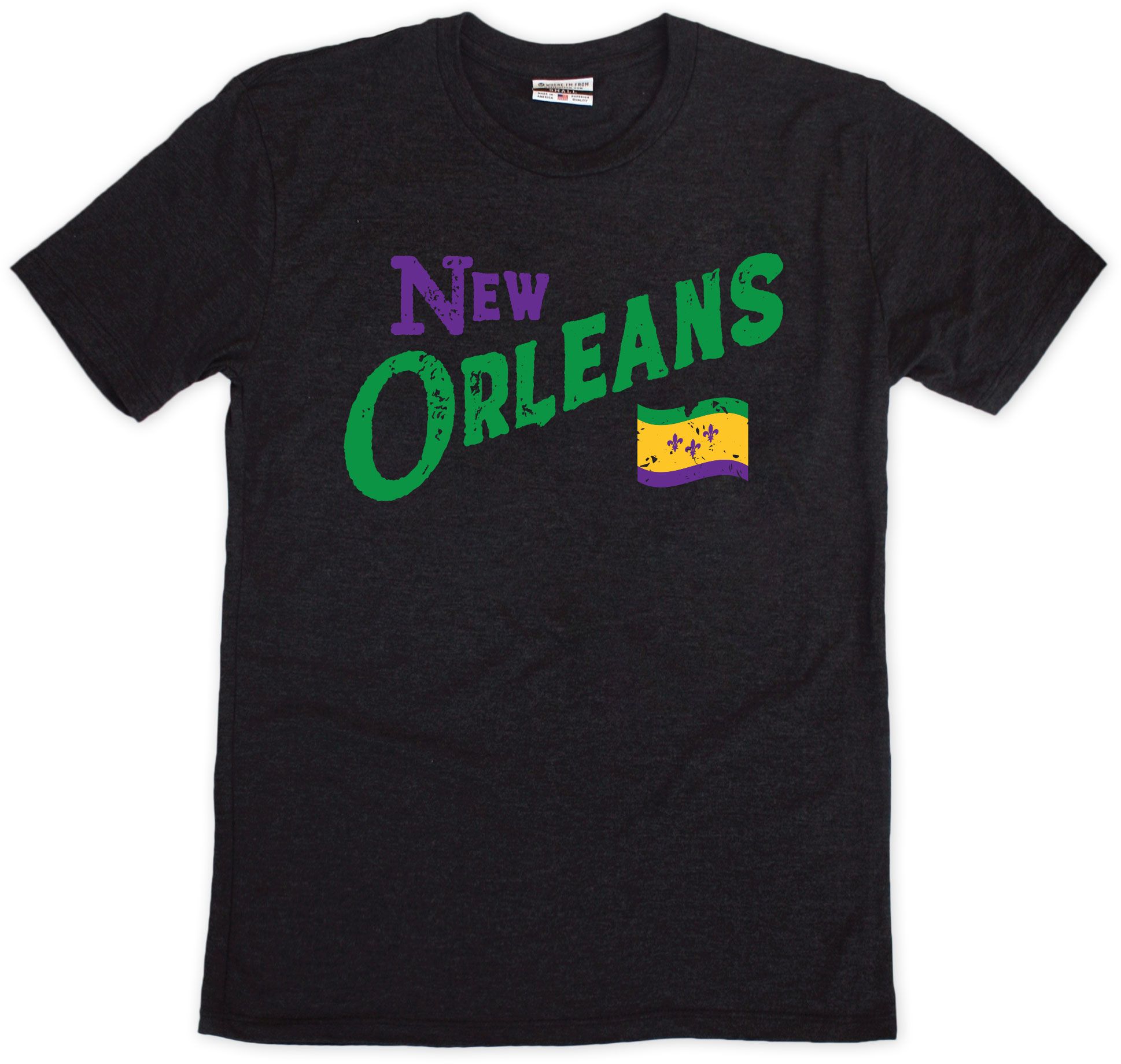 Where I'm From Adult New Orleans Black Script Flag T-Shirt