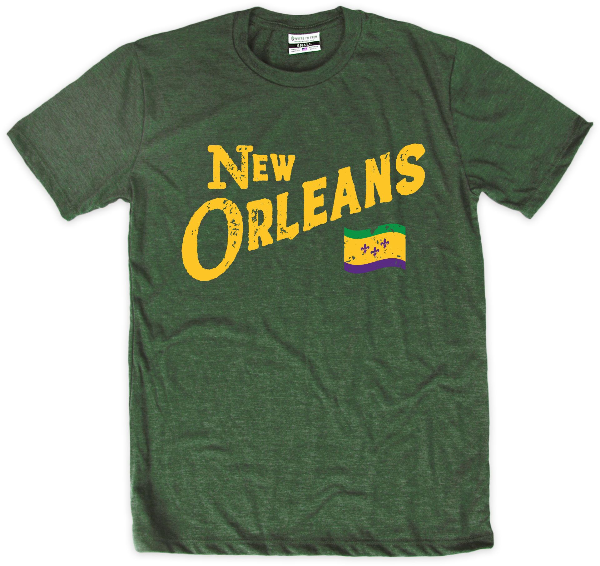 Where I'm From Adult New Orleans Green Script Flag T-Shirt