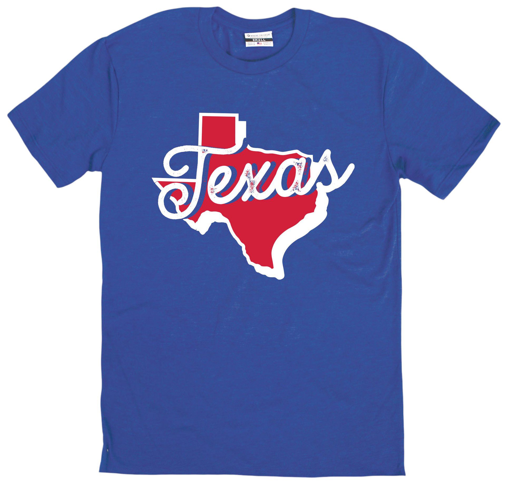 Where I'm From Adult Texas Blue Script State T-Shirt