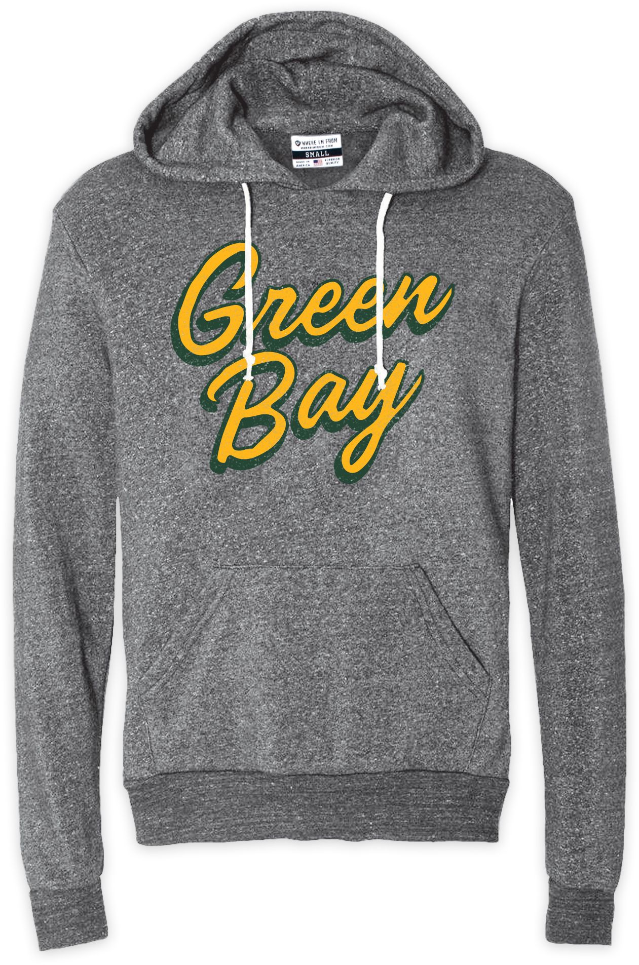 Where I'm From Green Bay Grey Script Fleece Pullover Hoodie