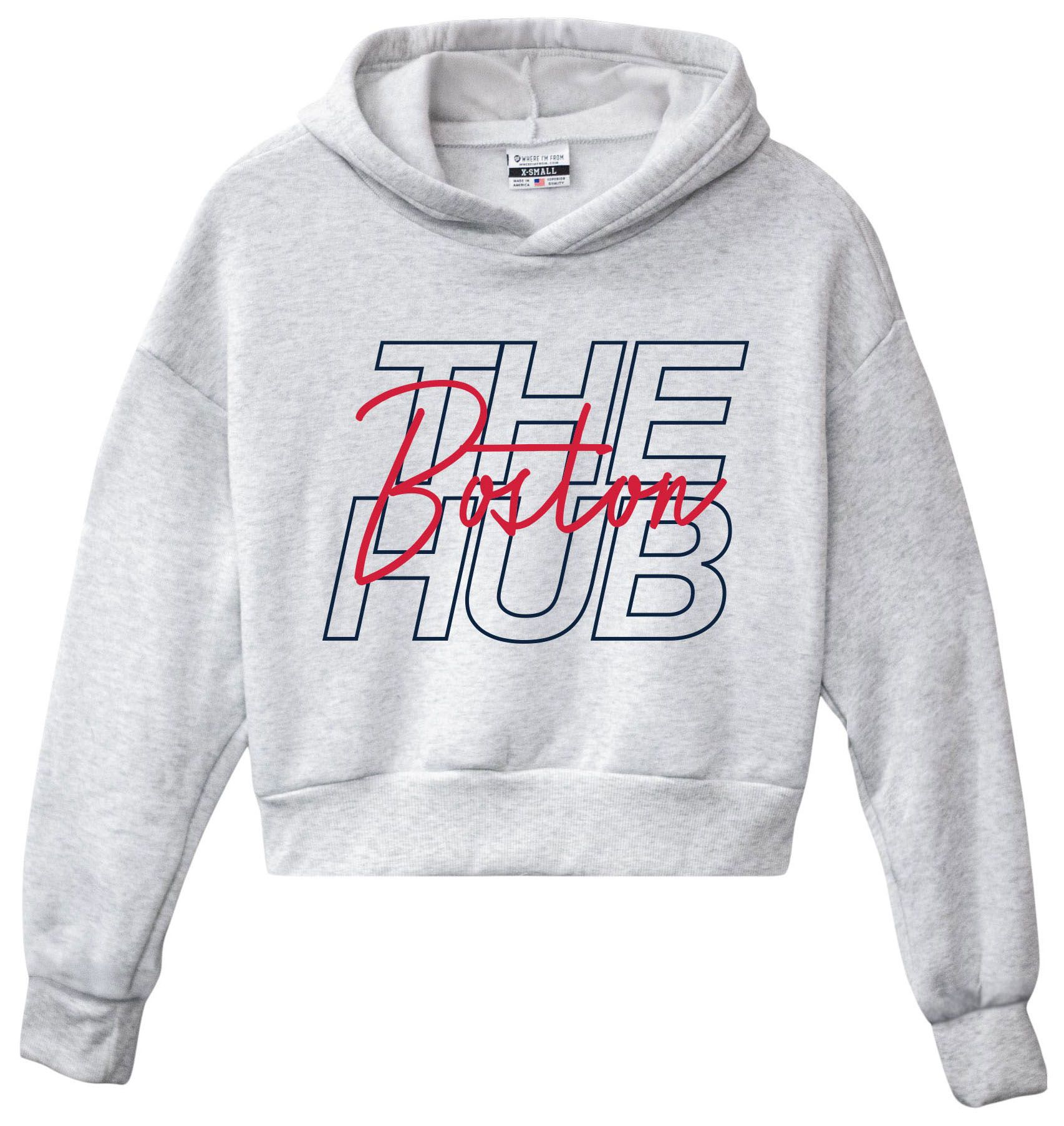 Where I'm From Women's Boston White Script Cropped Pullover Hoodie