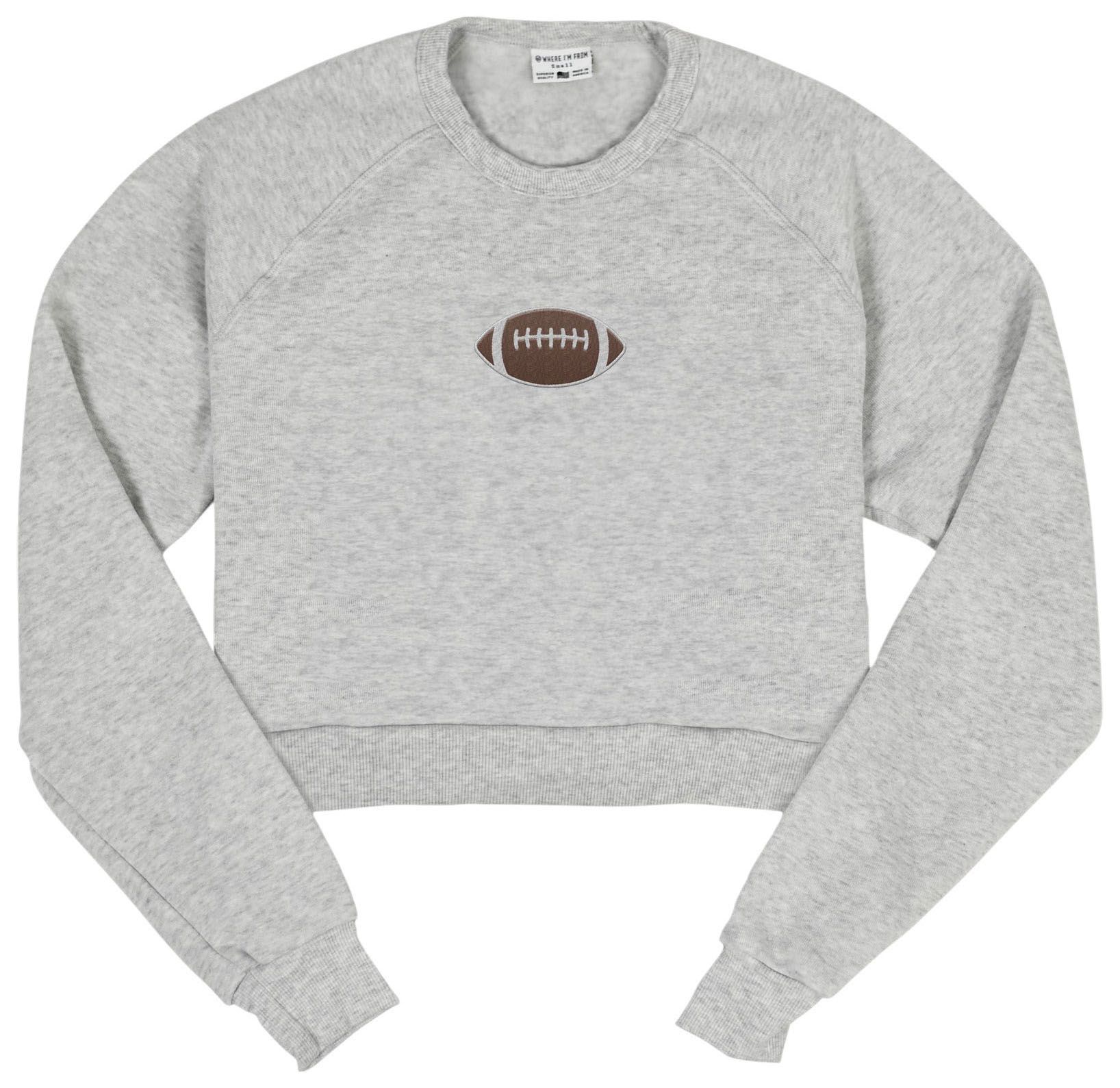 Where I'm From Women's Football Grey Embroidered Cropped Long Sleeve T-Shirt