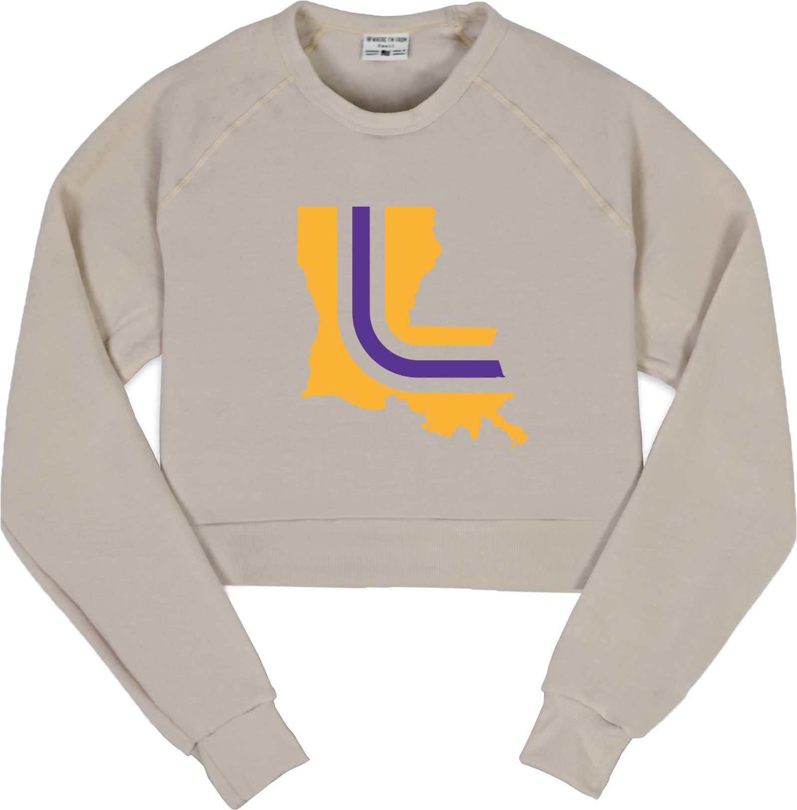 Where I'm From Women's Louisiana Cream State Stripe Cropped Fleece Crewneck Sweater