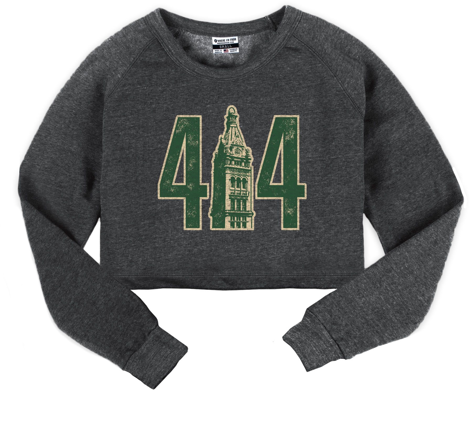 Where I'm From Women's MKE 414 Skyline Charcoal Fleece Cropped Crewneck Sweatshirt