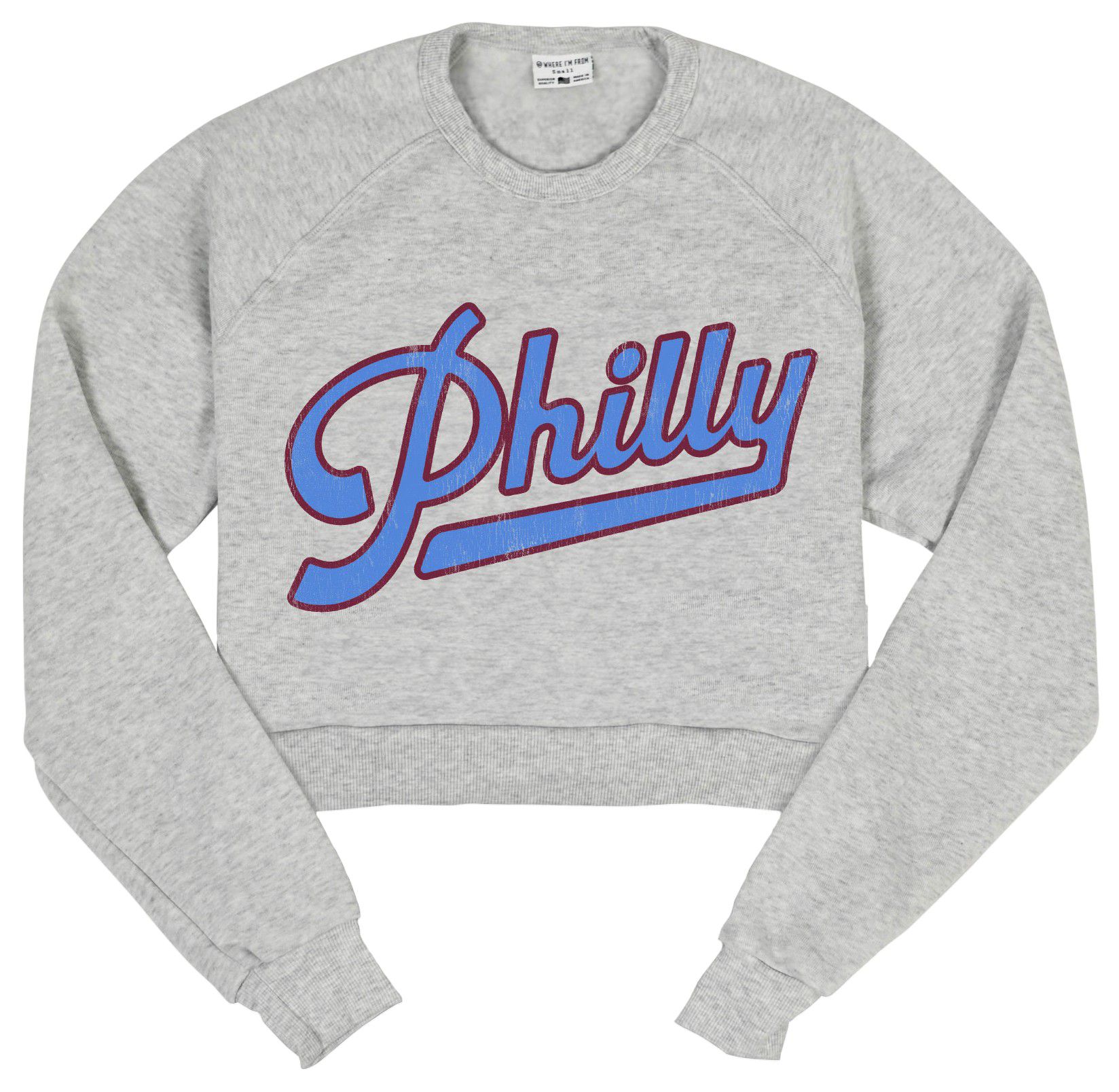 Where I'm From Women's Philadelphia Slant Script White Cropped Fleece Sweatshirt