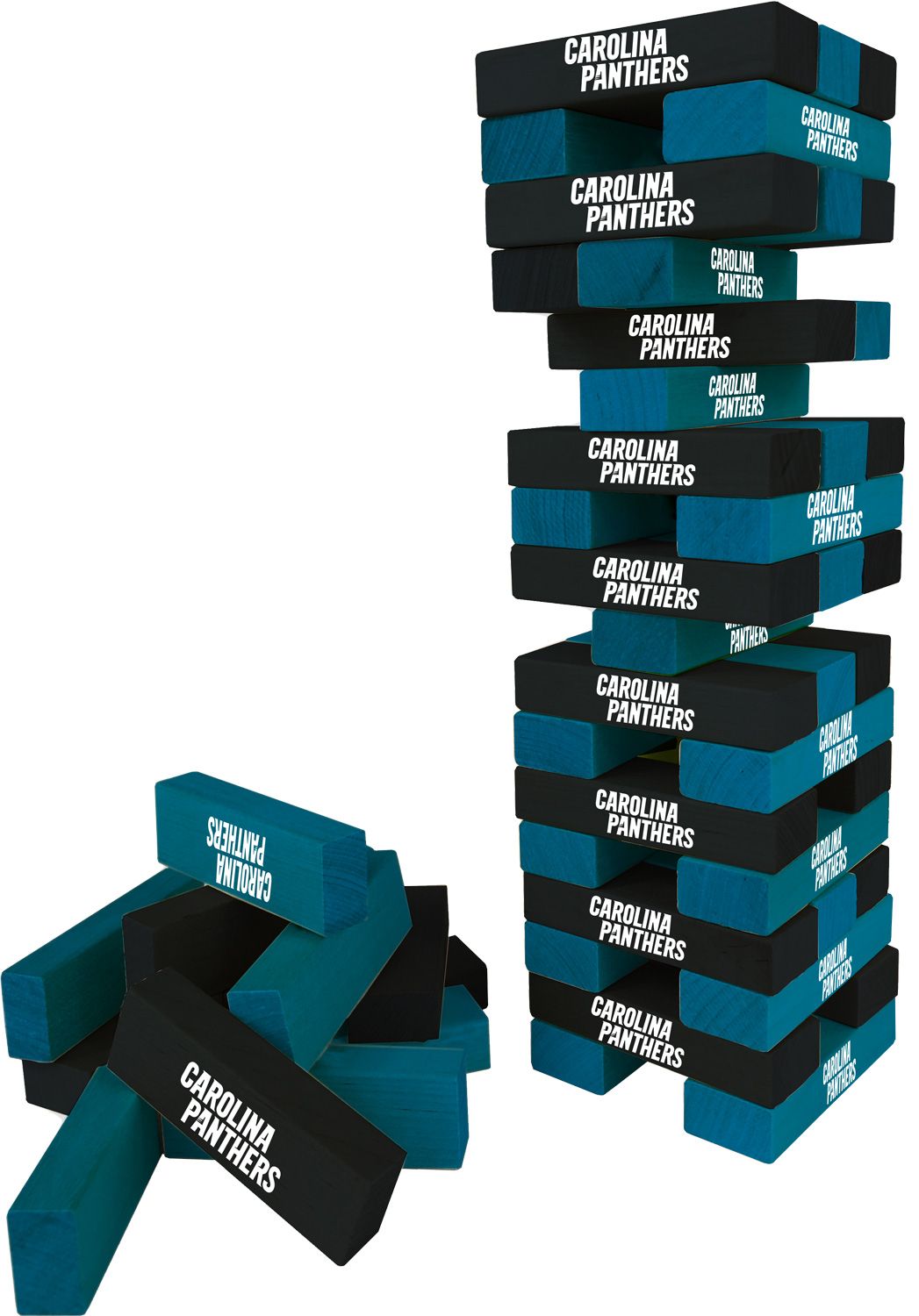 Bring the spirit of your favorite NFL team to your next tailgate with the Wild Sports Carolina Panthers Table Top Stackers. This giant stackers game set features 54 solid wooden blocks printed with the name of your favorite football team, stacking up to 60 inches high. Fun for the whole family, this game includes a carrying bag so it is ideal for transporting from backyard to tailgate and back again.