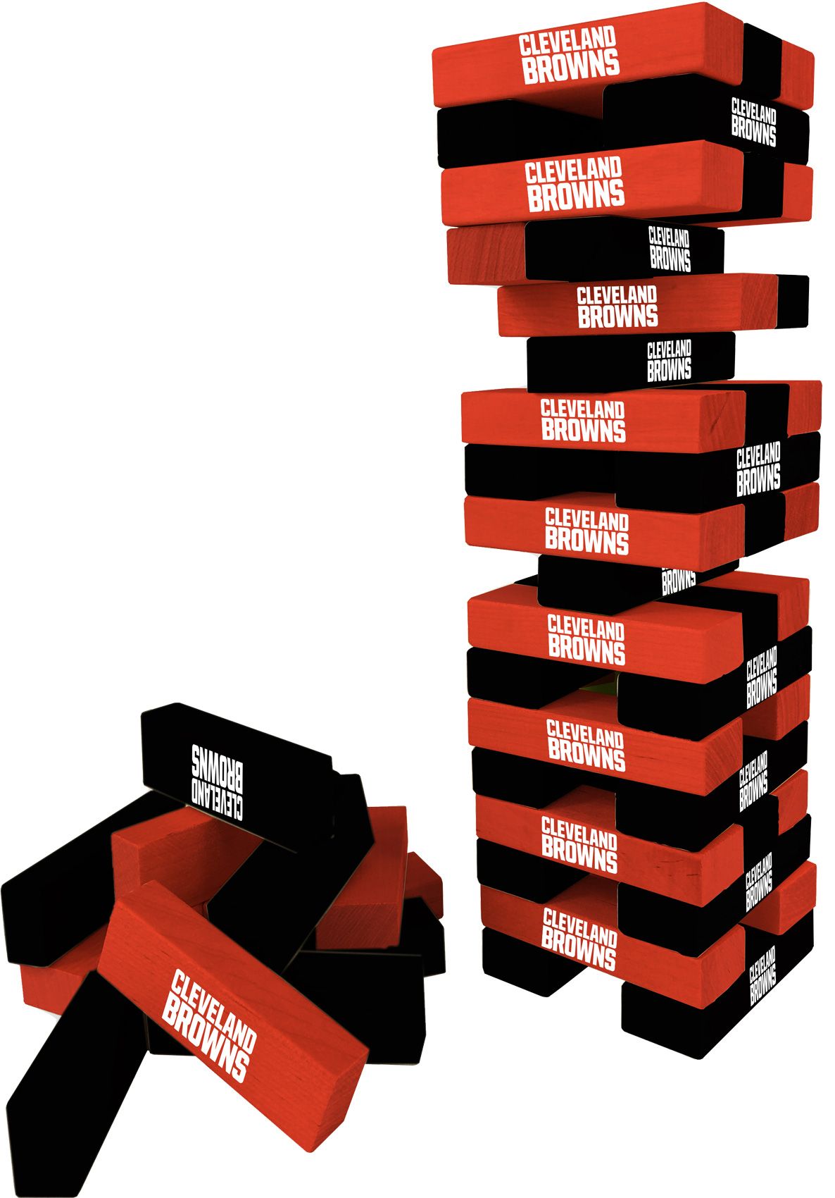Bring the spirit of your favorite NFL team to your next tailgate with the Wild Sports Cleveland Browns Table Top Stackers. This giant stackers game set features 54 solid wooden blocks printed with the name of your favorite football team, stacking up to 60 inches high. Fun for the whole family, this game includes a carrying bag so it is ideal for transporting from backyard to tailgate and back again.