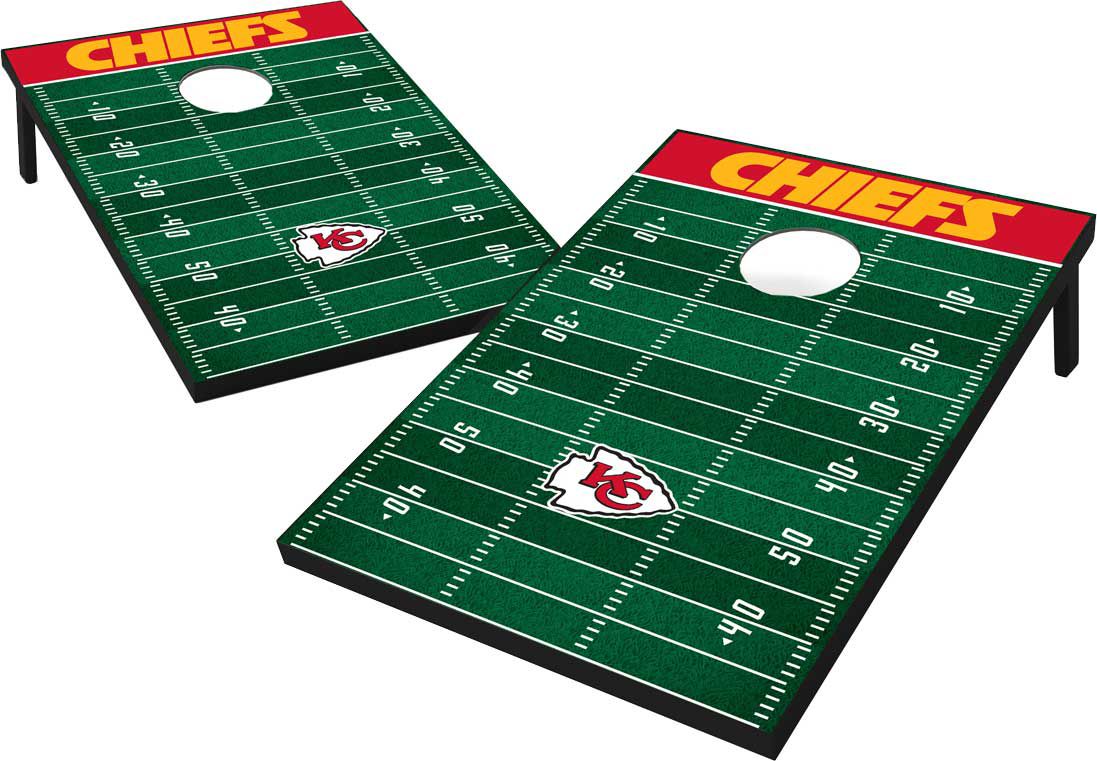 Support your team from the backyard or outside the stadium with the Wild Sports® Kansas City Chiefs Tailgate Bean Bag Toss. This fan favorite is easy to play, fun for all ages and a total must-have for your next outdoor event. The officially licensed, solid wood boards are sturdy and stable with legs that rotate under for travel and storage, and come with 8 durable bean bags so you are ready for team play.