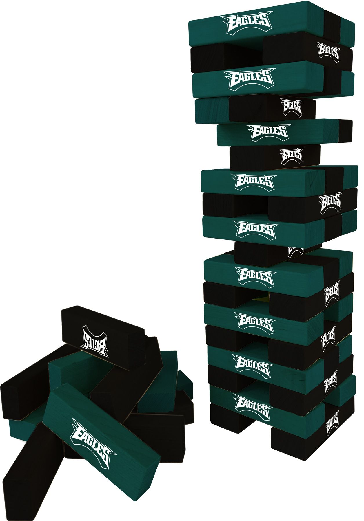 Bring the spirit of your favorite NFL team to your next tailgate with the Wild Sports Philadelphia Eagles Table Top Stackers. This giant stackers game set features 54 solid wooden blocks printed with the name of your favorite football team, stacking up to 60 inches high. Fun for the whole family, this game includes a carrying bag so it is ideal for transporting from backyard to tailgate and back again.