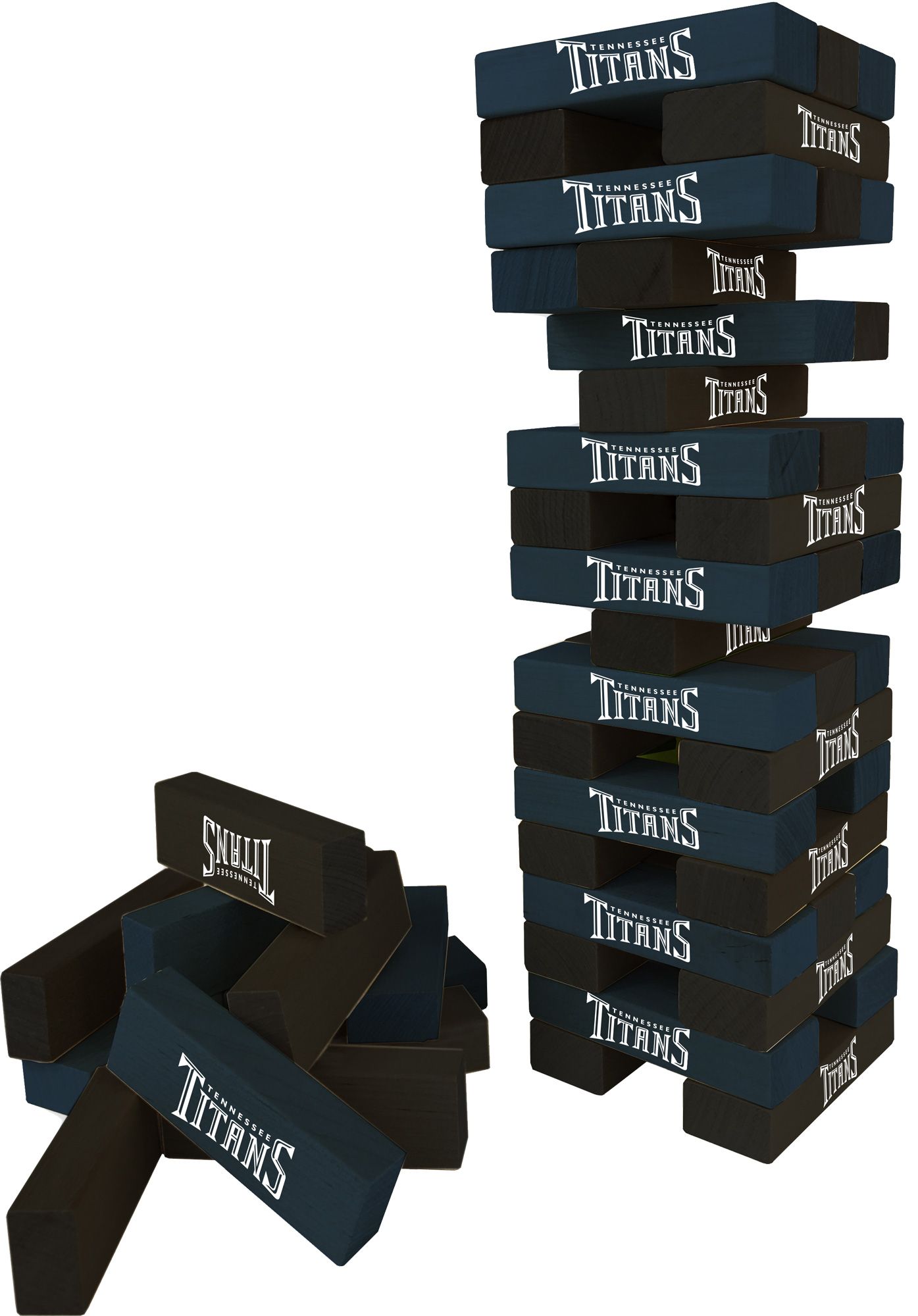 Bring the spirit of your favorite NFL team to your next tailgate with the Wild Sports Tennessee Titans Table Top Stackers. This giant stackers game set features 54 solid wooden blocks printed with the name of your favorite football team, stacking up to 60 inches high. Fun for the whole family, this game includes a carrying bag so it is ideal for transporting from backyard to tailgate and back again.