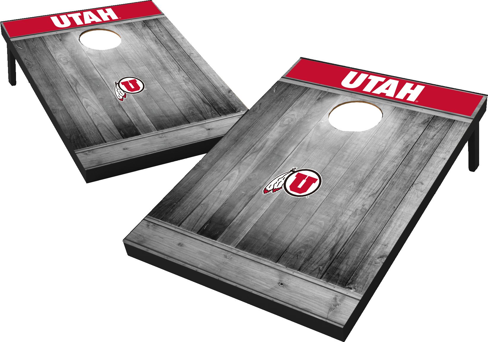 Bring the spirit of your favorite collegiate team to your next tailgate with the Wild Sports Utah Utes NCAA Grey Wood Tailgate Toss. This cornhole set features two boards with grey wood finish and the team’s logo. Each board has foldable legs and a carrying handle so it is ideal for transporting from backyard to tailgate and back again. It includes eight miniature bean bags and game instructions.