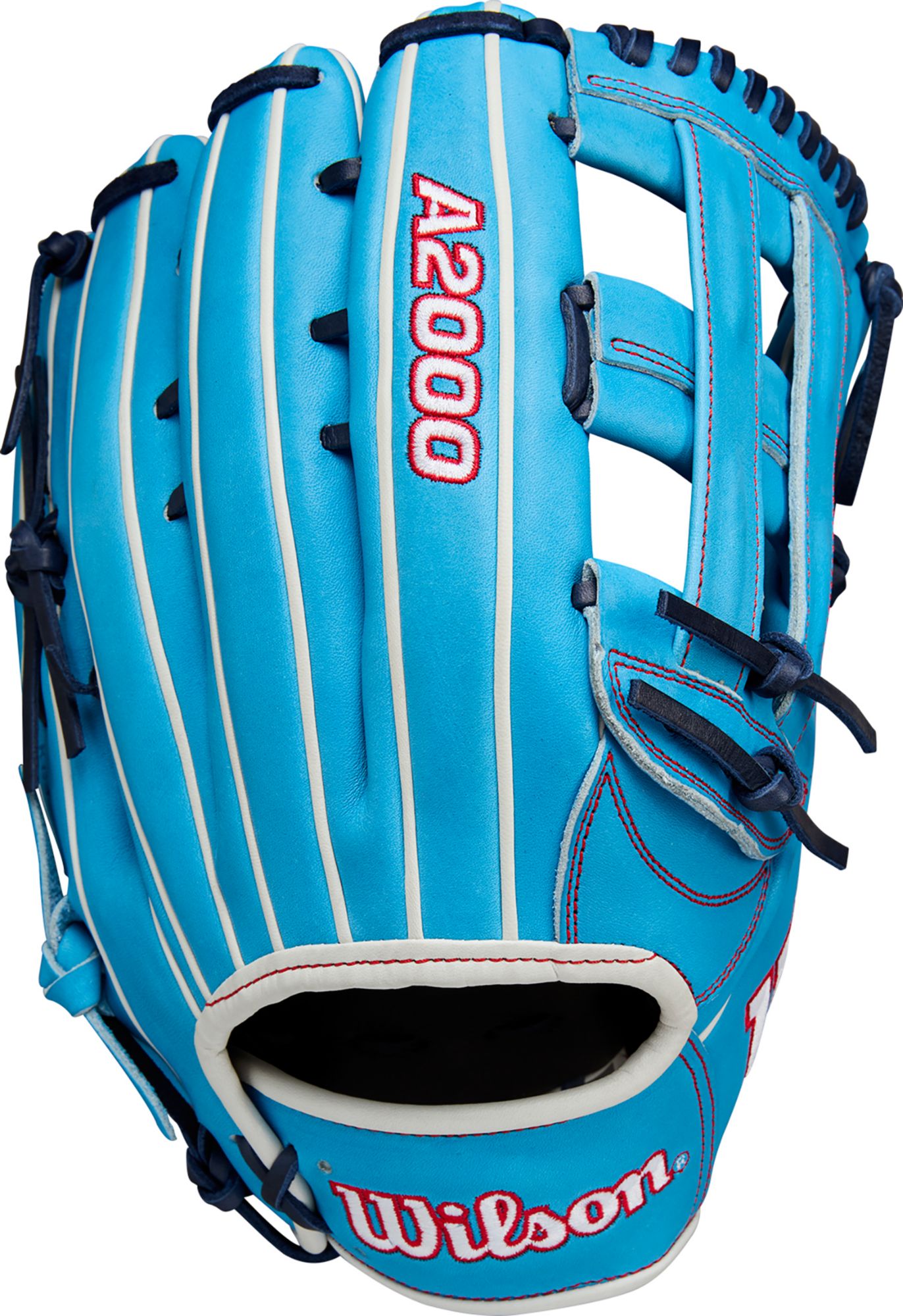 I bought the Wilson A2000 12.75 softball glove in light Blue and Black laces. It’s a nice looking glove that, well taken care of, will last a long time.