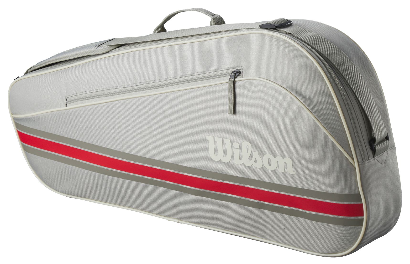 A great bag for club players and those who are new to the sport, the latest Team 3 Pack from Wilson provides room for up to three tennis rackets, apparel and other essential gear. Besides the main compartment, there's a large outer zip pocket perfect for stashing extra balls, grips and personal items. Carry it either by hand with the top grab handle or use the padded shoulder strap.
