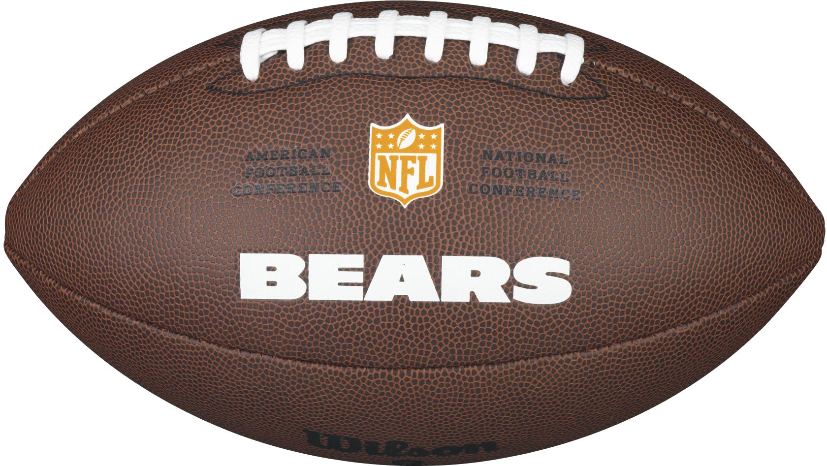 Take the feeling of watching your favorite team on the feel every Sunday to your pickup games when you get the Wilson® Chicago Bears Composite Official-Size Football.