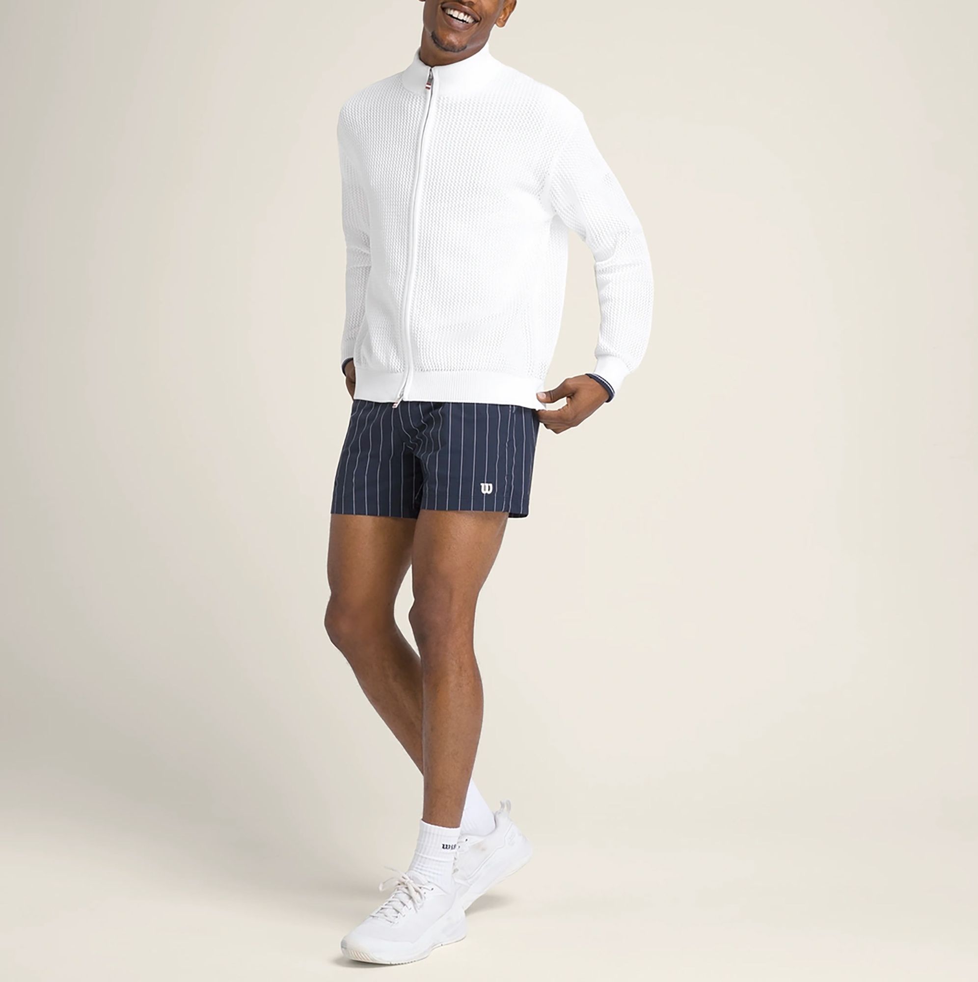 The Wilson Knit Bomber is our take on the classic bomber jacket. The look is clean and effortless to wear, so it looks good while walking up to center court or out for a weekend dinner. It has a full knit design with quilted duck down insulation throughout, plus a contrast-tipped collar, cuffs and hem for signature cool.
