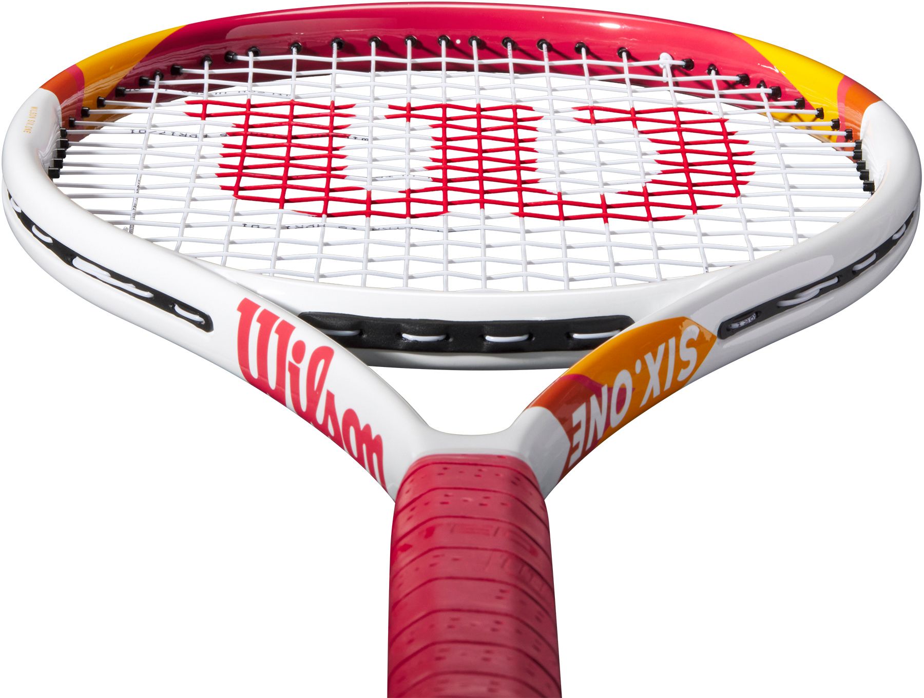 Description: Step your game up to the next level with the Six One Tennis Racket. Another tennis racket in the Six line, it is the perfect fit for players looking for a combination of power, control, and feel. At a slightly lighter weight than the Six LV, this racket is more arm-friendly and maneuverable all while generating great pace on the ball. A more closed string pattern also allows players to get the extra spin on their shots without compromising their strokes. Comes pre-strung and with a Cushion Aire grip that provides maximum comfort while holding the racket.