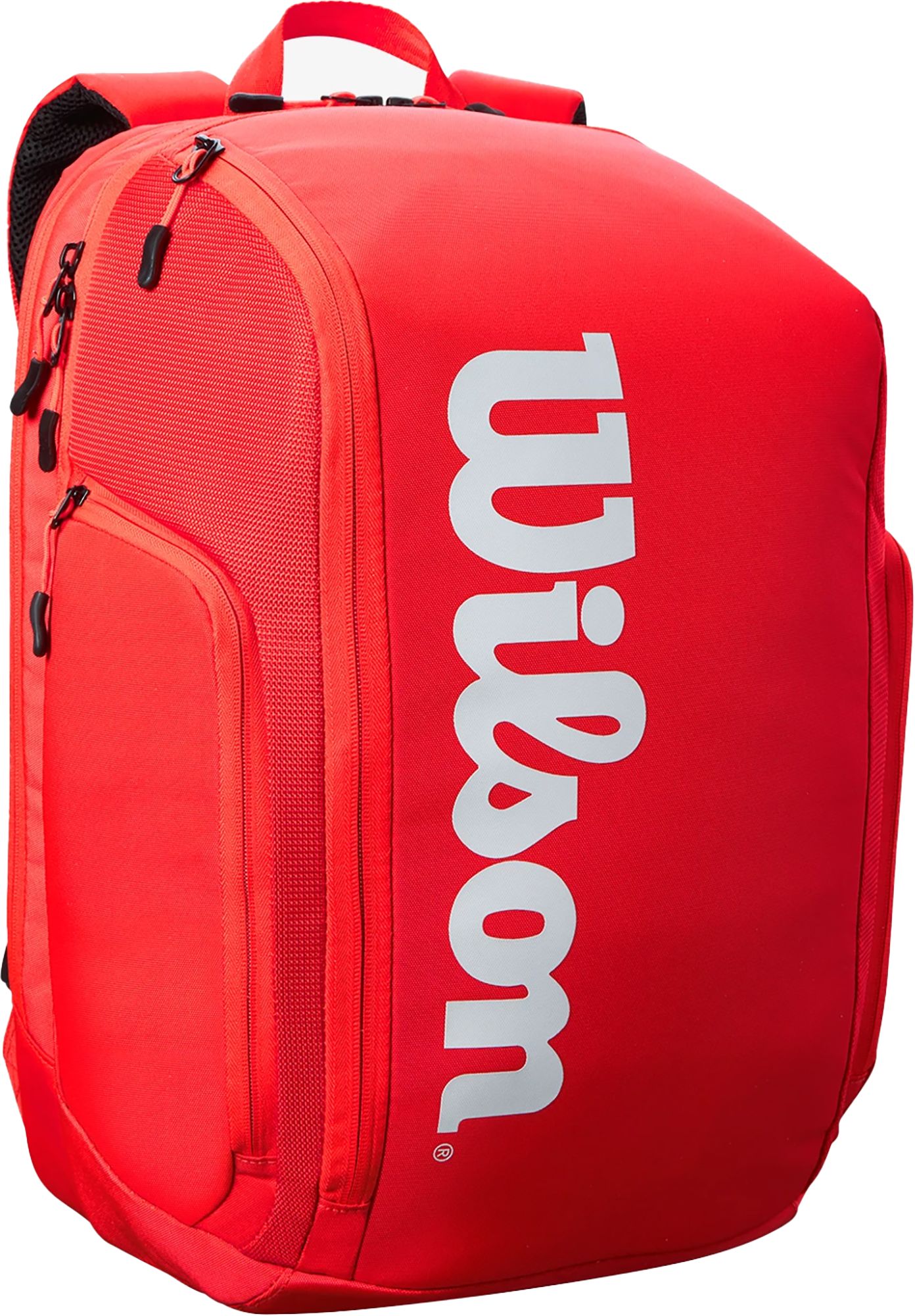 Superior quality, tennis-oriented functionality and classic design collide: introducing Wilson's latest Super Tour bag collection. This backpack comprises a padded compartment that holds up to 2 rackets with locking zippers, a ventilated pocket for shoes or dirty clothing and a sleeve in the main compartment to comfortably fit a laptop or tablet. Tennis players will also appreciate the Thermoguard lining in one side zip compartment that keeps snacks and water cooler for longer.