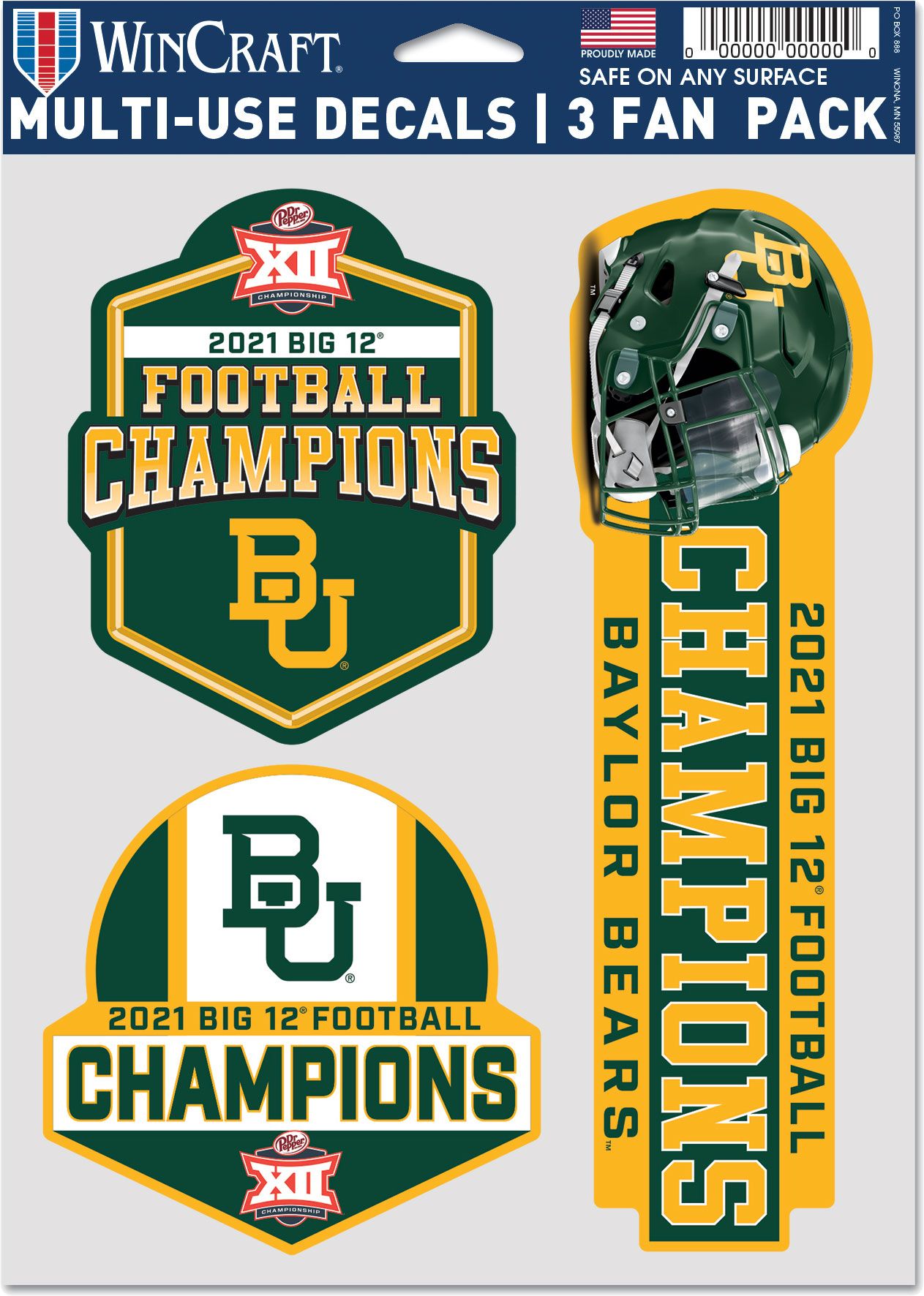 WinCraft 2021 Big 12 Football Champions Baylor Bears 3-Pack Decal