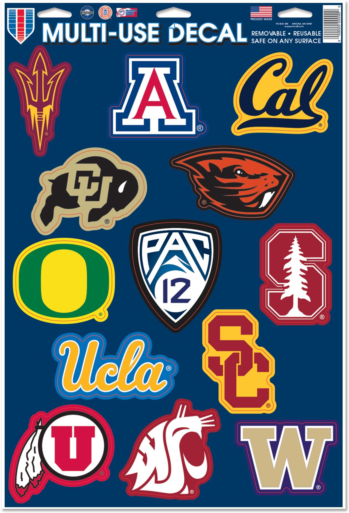 Stick your college football pride to any surface with the WinCraft® NCAA® PAC 12 All Team Decal.