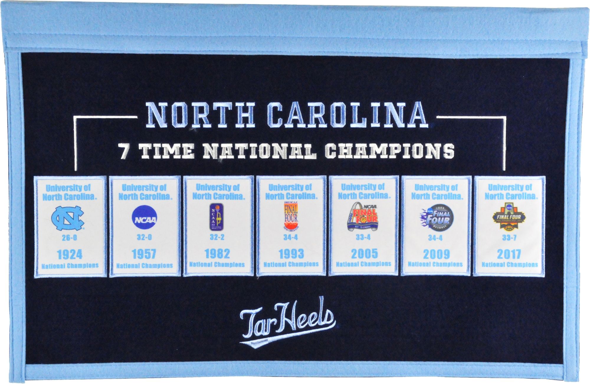 Commemorate a legacy of winning! You don’t need rafters to hang your own championship banner at home thanks to the Winning Streak Sports® North Carolina Tar Heels Repeat Rafter Banner.
