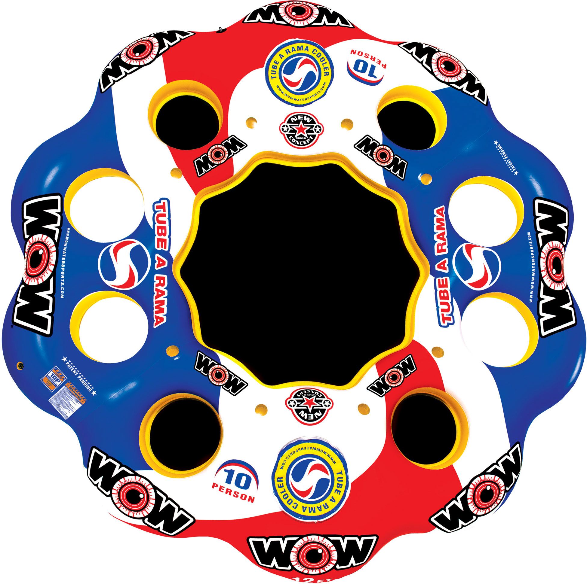 Get the party started with this awesome Tube-A-Rama Island by WOW®! Perfect for hanging out on the lake or at the pool, this island float boasts enough seats for you and nine of your favorite party-goers, plus cup holders. Two large coolers at the middle keep the drinks cold while you kick back and relax. Hang out in the warm afternoon sun with the Tube-A-Rama!