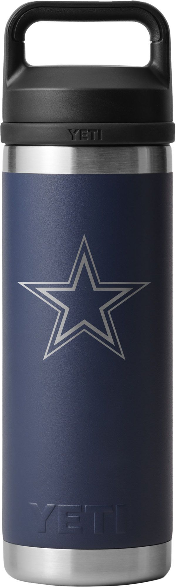 Show off your team pride while staying hydrated with the YETI Dallas Cowboys 18 oz. Rambler Bottle with Chug Cap. Built tough with stainless steel construction and double-wall vacuum insulation, this bottle keeps your drinks at the perfect temperature, whether you're cheering from the stands or tackling your day. Featuring bold Cowboys graphics, a leak-proof chug cap, and dishwasher-safe convenience, it's the ultimate companion for fans who are always on the move.