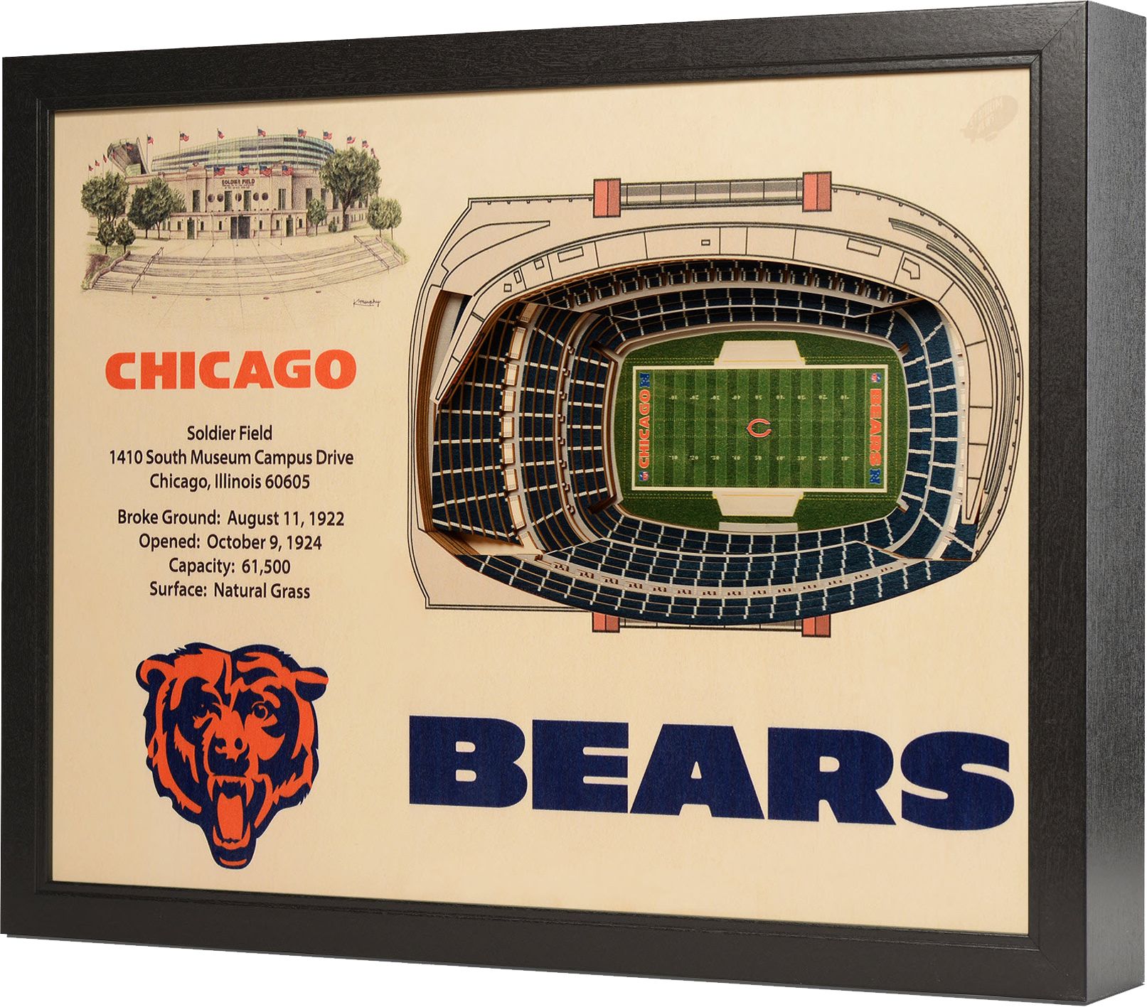 Add a unique piece to your collection and pay homage to where your favorite team plays with the You The Fan® Chicago Bears 25-Layer StadiumViews 3D Wall Art.