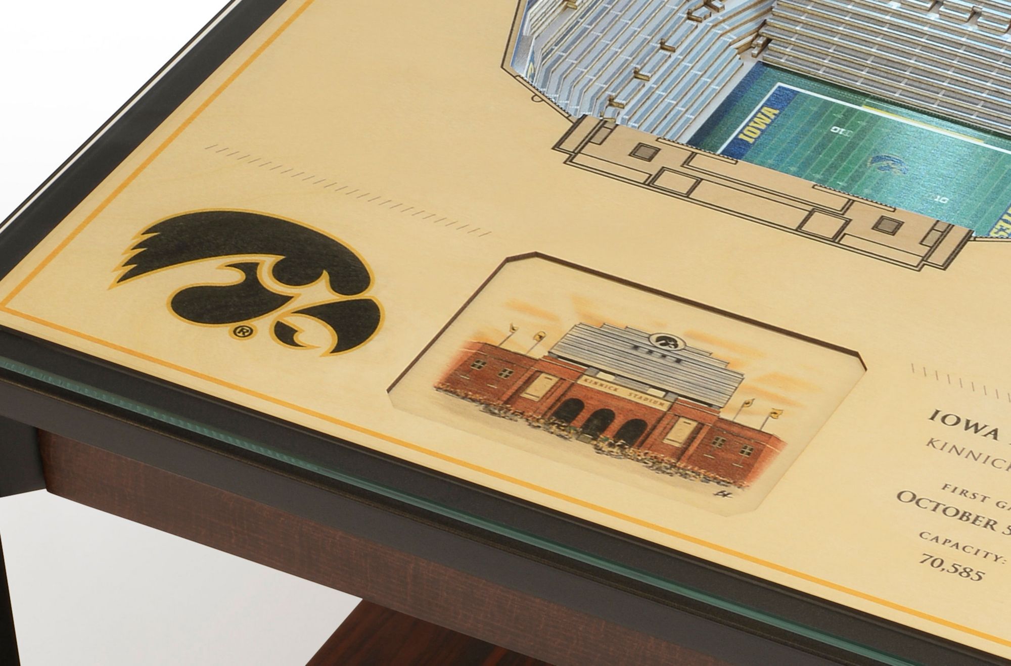Add a unique finishing touch to your den or office and represent your team with the You The Fan® Iowa Hawkeyes 25-Layer StadiumViews Lighted End Table.