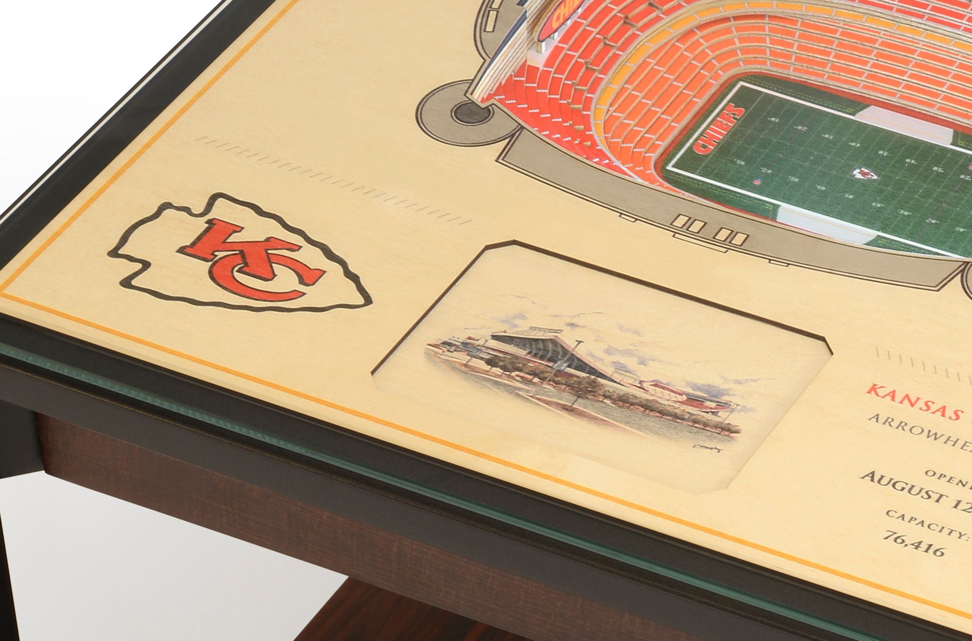 Add a unique finishing touch to your den or office and represent your team with the You The Fan® Kansas City Chiefs 25-Layer StadiumViews Lighted End Table.