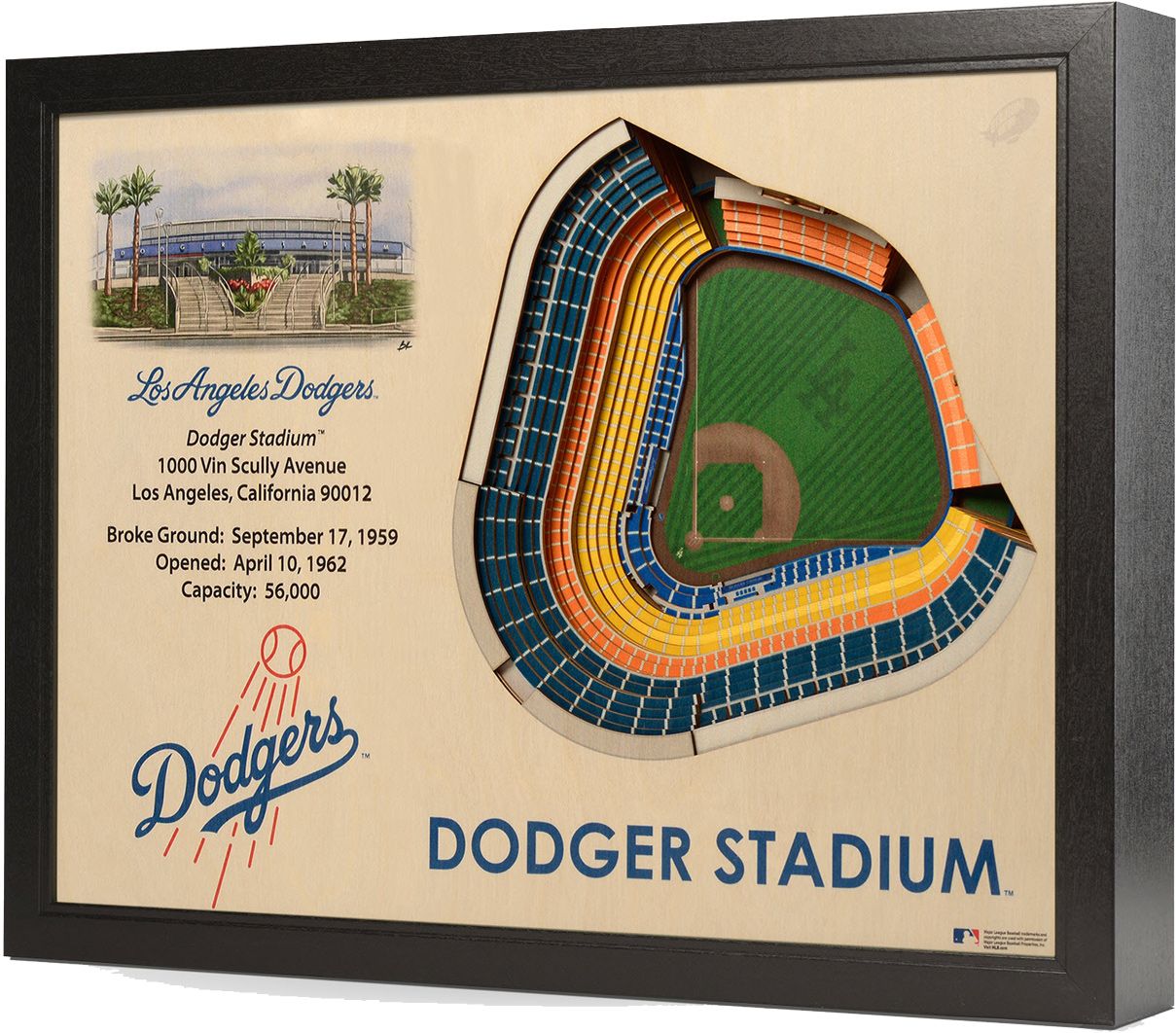 Add a unique piece to your collection and pay homage to where your favorite team plays with the You The Fan® Los Angeles Dodgers 25-Layer StadiumViews 3D Wall Art.