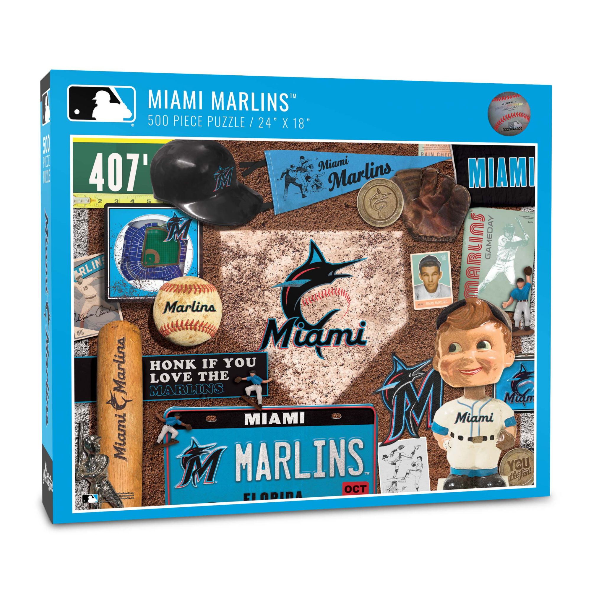 Spend a relaxing day putting together a puzzle and getting a fun glimpse back in time You The Fan® Miami Marlins Retro Series 500-Piece Puzzle.