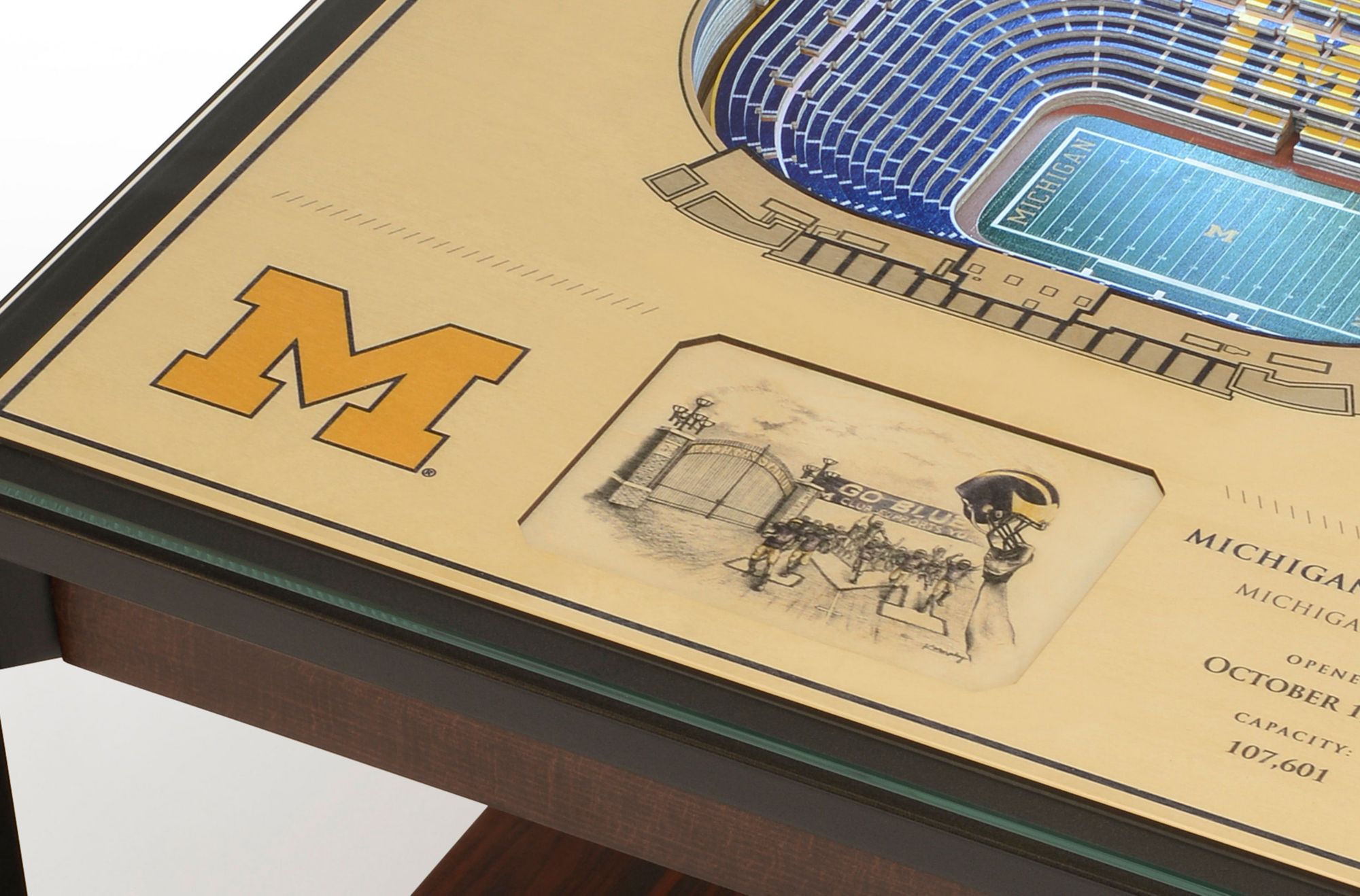 Add a unique finishing touch to your den or office and represent your team with the You The Fan® Michigan Wolverines 25-Layer StadiumViews Lighted End Table.