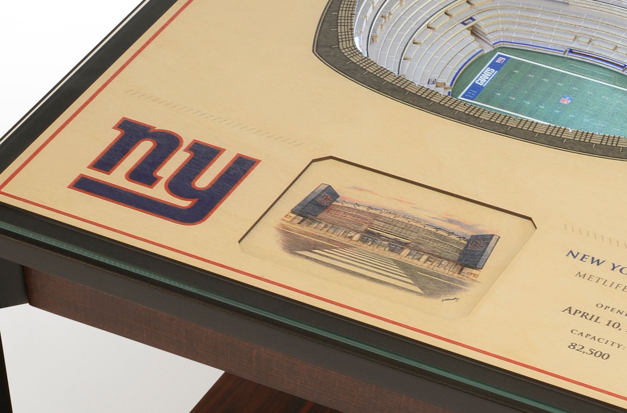 Add a unique finishing touch to your den or office and represent your team with the You The Fan® New York Giants 25-Layer StadiumViews Lighted End Table.