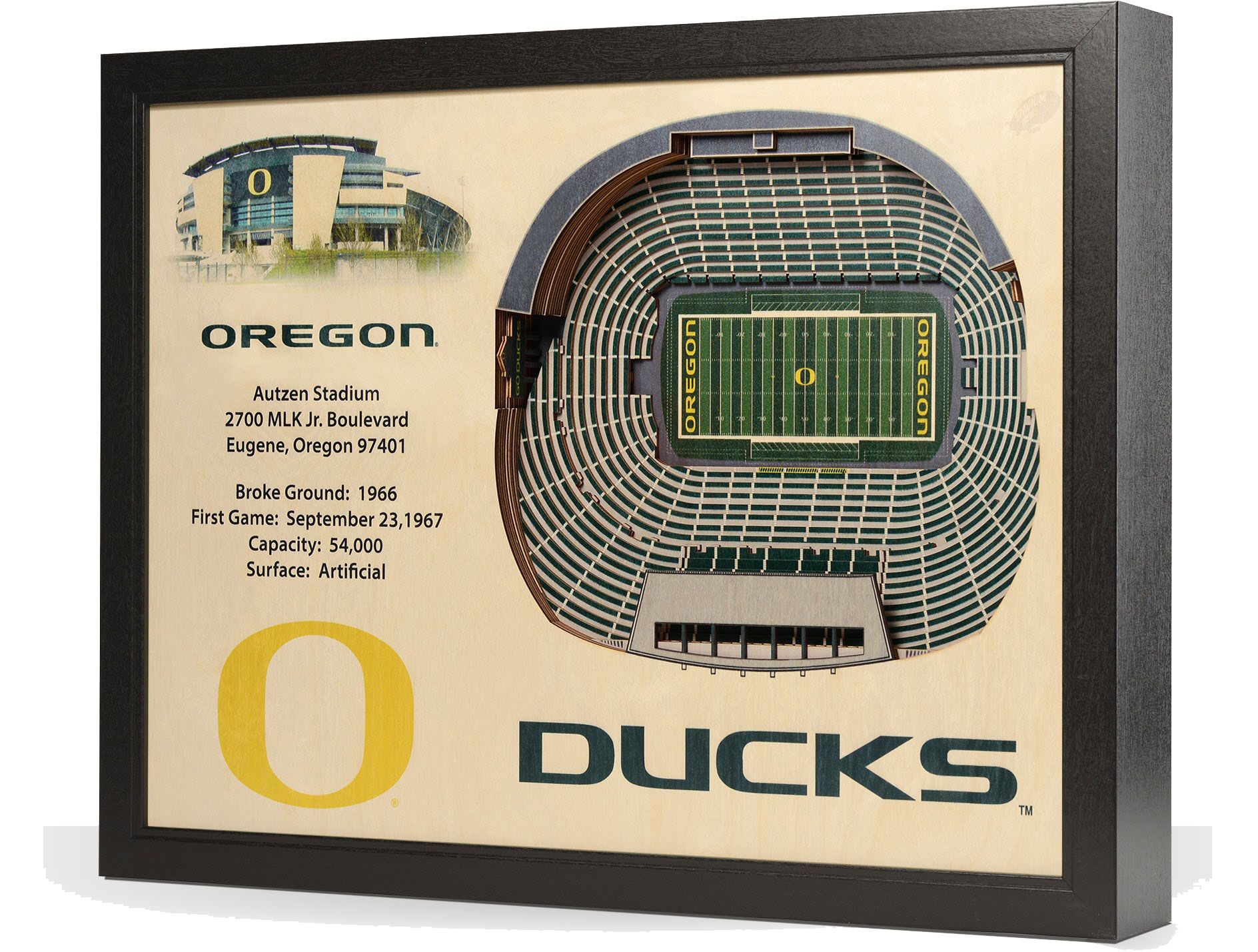 Add a unique piece to your collection and pay homage to where your favorite team plays with the You The Fan® Oregon Ducks 25-Layer StadiumViews 3D Wall Art.