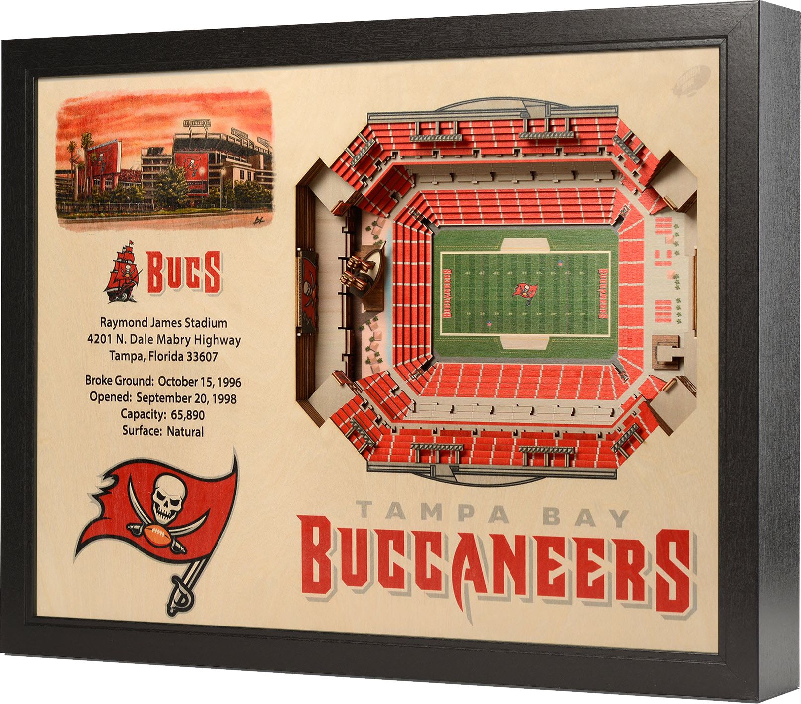 Add a unique piece to your collection and pay homage to where your favorite team plays with the You The Fan® Tampa Bay Buccaneers 25-Layer StadiumViews 3D Wall Art.